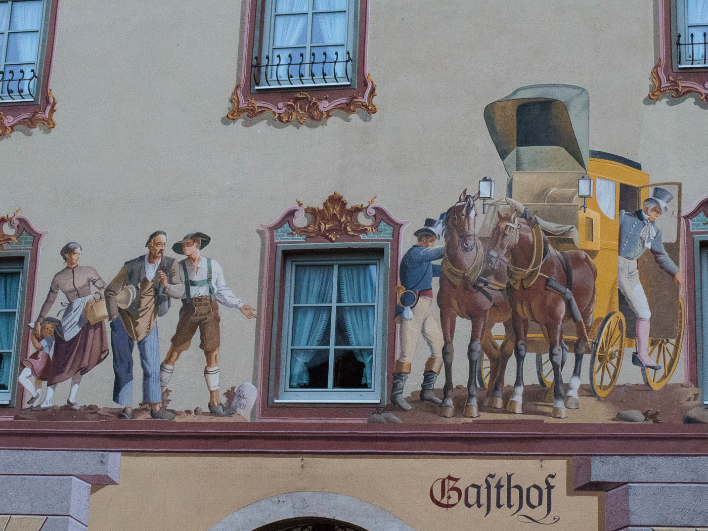 Auf der Weiterfahrt stoppten wir auf der Arlbergpasshöhe. Es schneite quer, wir kämpften uns bei widrigsten Verhältnissen durch den Sturm und erreichten doch noch eine schützende Bleibe – wo wir aber abgewiesen wurden, das Lokal war propenvoll, so dass wir unsere Reise ohne Halt bis Mittenwald fortsetzten.