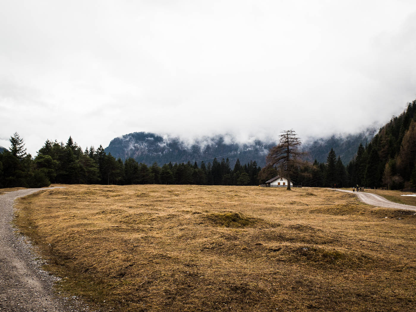 Die Landschaft war wunderschön, an die Auen grenzte gleich die Heide, geprägt durch das Heidekraut und Föhren. Dass es aber überall Zeitgenossen gibt, die keinerlei Respekt vor der Natur haben, zeigten die Motorradspuren auf den Kiesbänken – in einem Naturschutzgebiet notabene. Das Wetter war soso-lala, aber immerhin regnete es nicht mehr. Bei der nächsten Brücke wechselte ich die Flussseite und wanderte Richtung Mittenwald zurück. An einem Fels übten deutsche Gebirgsjäger das Klettersteiggehen. Der Rückweg war nicht mehr so interessant, da er durch Wald führte und leider auch in der Nähe der Strasse war. Die Wiesen vor Mittenwald waren ebenfalls bereit für den Frühling, die Krokusse warteten nur noch auf Sonnenschein, um ihre ganze Pracht zu präsentieren. Nach drei Stunden und 14 Kilometer war ich wieder zurück in Mittenwald. Mir verblieb noch genug Zeit, mich anderen Tätigkeiten zu widmen. Zum Beispiel schlafen.