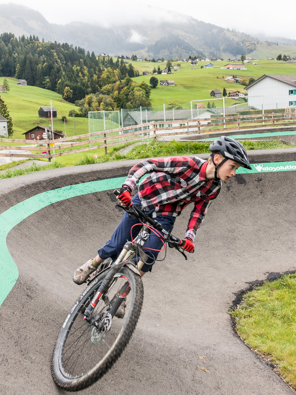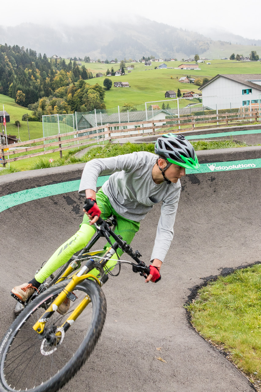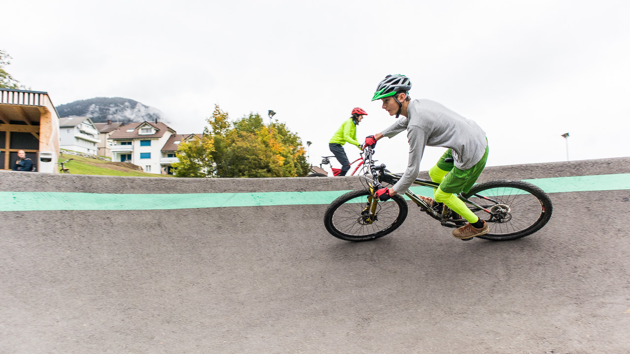 Im Pumptrack können die Jungs nun ihre gesparte Energie verbrauchen. Sie haben die Technik raus, ohne zu treten Runde um Runde zu drehen.