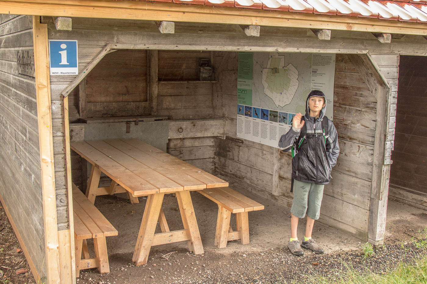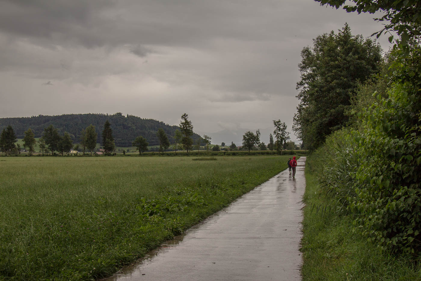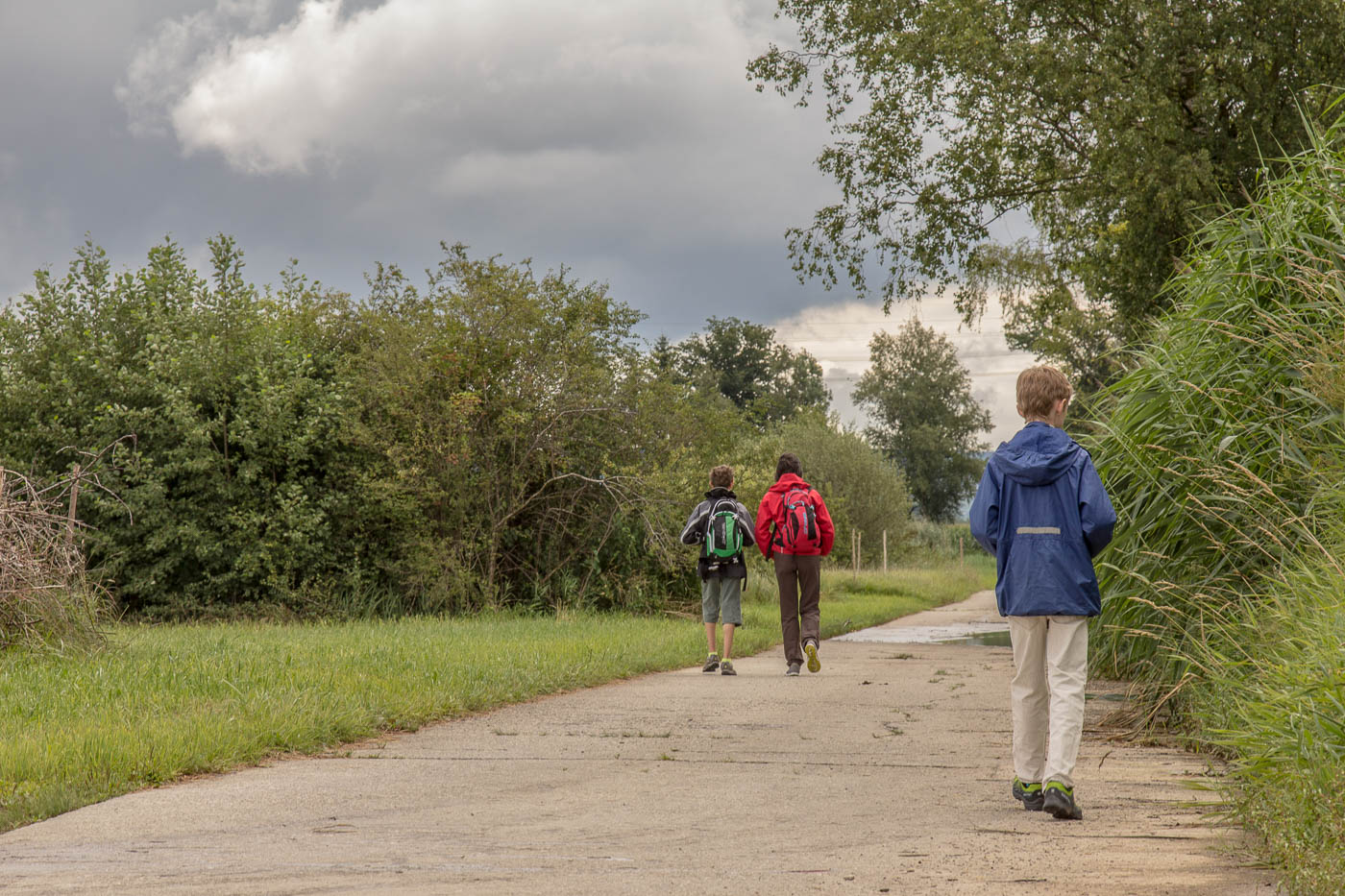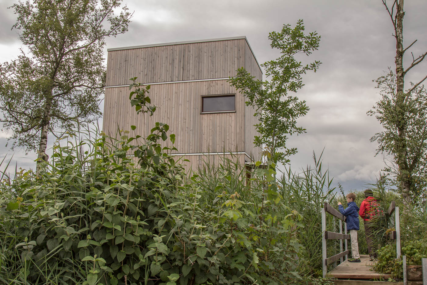 Wenn es zu regnen beginnt, so wie jetzt eben, zieht man sich wieder in den ersten Stock zurück, wo man im Trockenen picknicken kann. Uns zieht es bald wieder nach draussen, Regen hin oder her. Man kann das ganze Naturschutzgebiet gut umrunden, ohne sich die Schuhe allzu schmutzig zu machen. Augenfällig wird beim Rundgang, wie abrupt der Wechsel ist von Natur und intensiver Landwirtschaft.