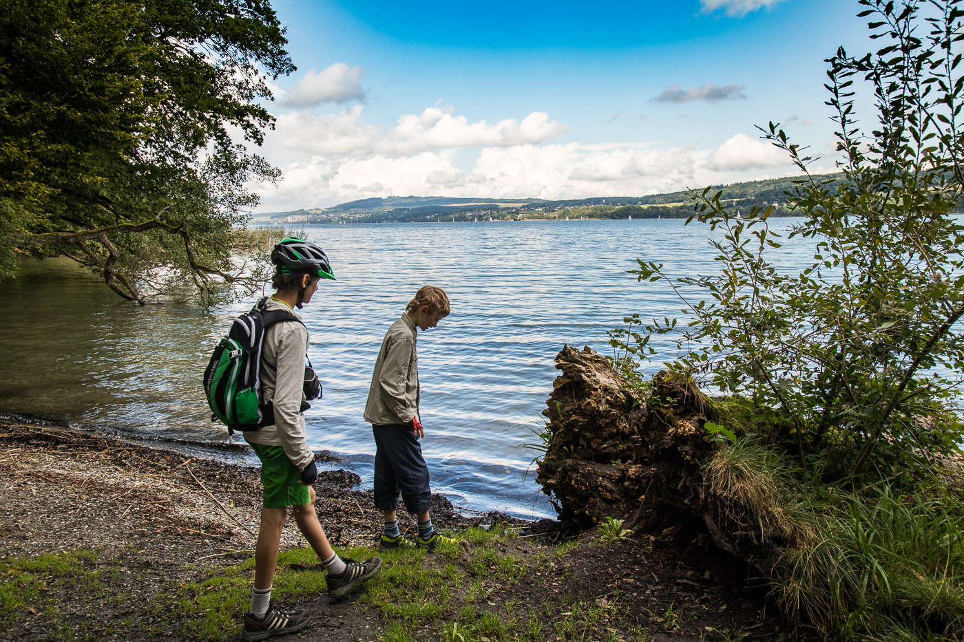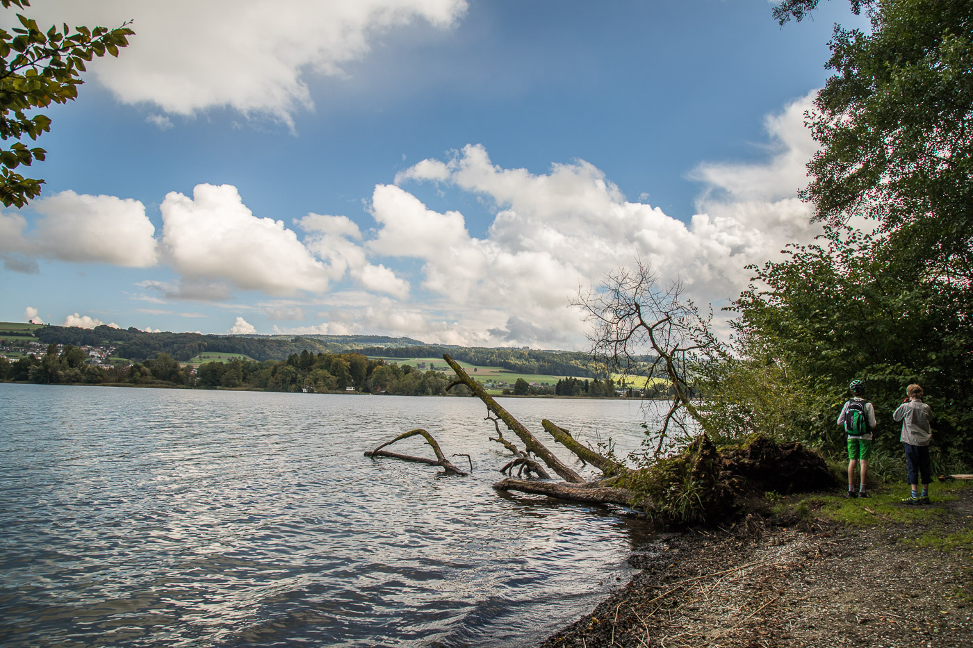 Wir haben nun die Wahl: Rechts nach Meisterschwanden und mit dem Schiff zurück, oder nach links dem See entlang nach Beinwil. Wir entscheiden uns für die zweite Variante, was sich im Nachhinein noch als gute Wahl herausstellen soll. Bei Mosen müssen wir leider 500 Meter auf der vielbefahrenen Kantonsstrasse radeln, Wir fahren auf dem Radweg von Mosen Richtung Beinwil, ehe wir rechts in den Wald einbiegen. Am Hallwilersee legen wir nochmals eine Pause ein, bevor wir via Beinwil wieder nach Hause fahren. Eine halbe Stunde später regnet und donnert es, und das nicht knapp. Ich würde sagen: Perfektes Timing.