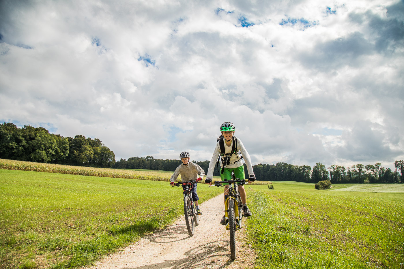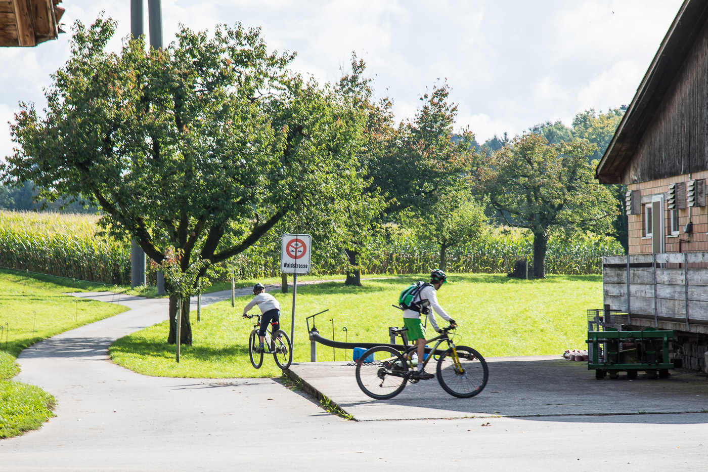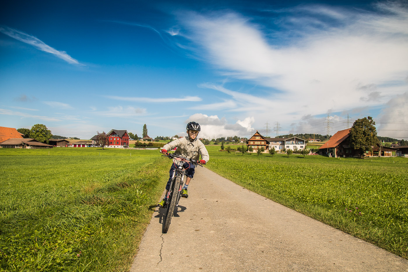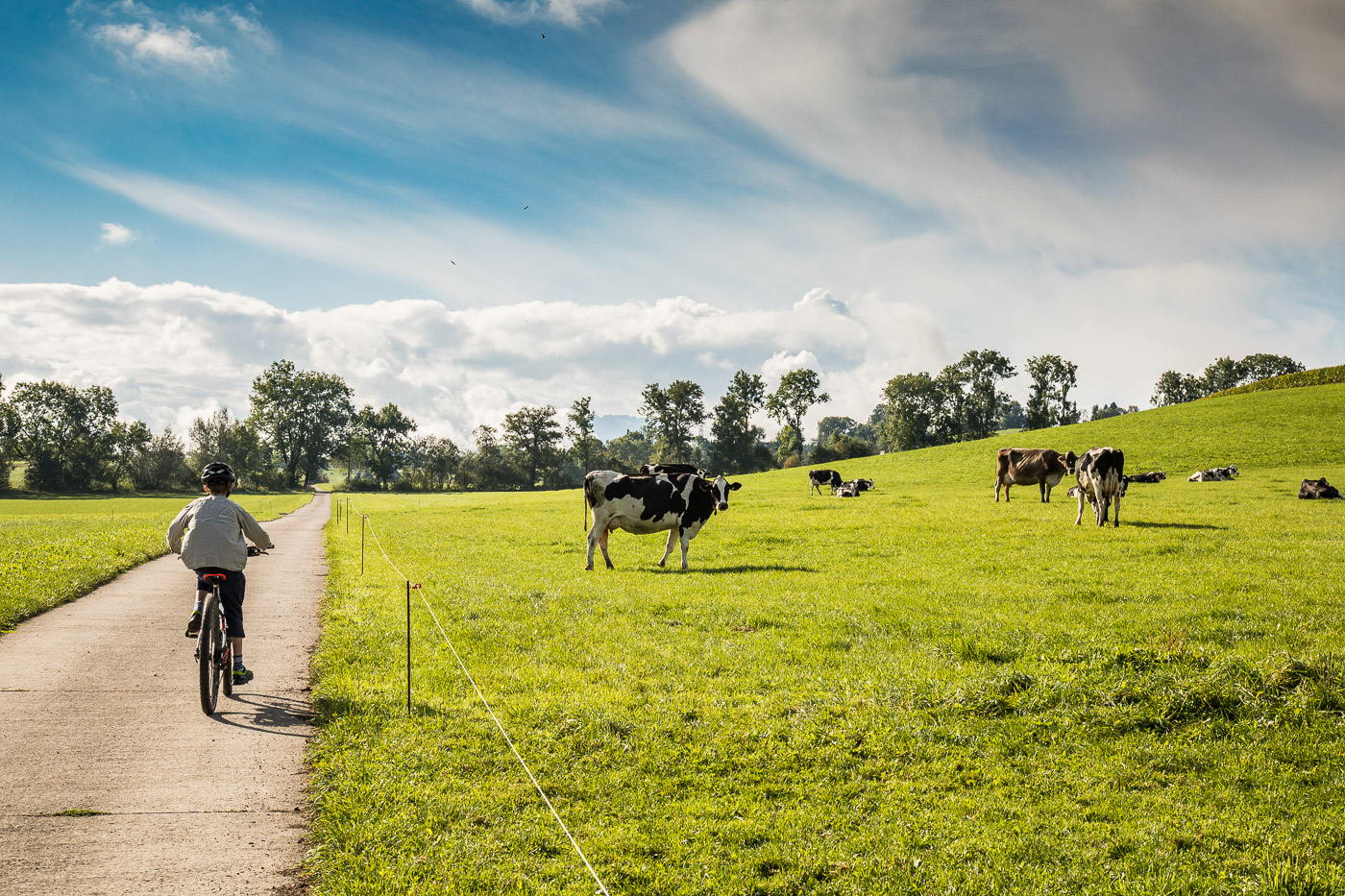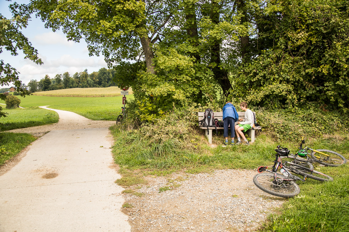 Nach dieser kurzen Pause geht es weiter, der Baldeggersee taucht nun im Blickfeld auf. Hier kommen wir auch auf die Route unserer Baldeggerseeumrundung. Nach Ferren ist die richtige Mittagspause fällig, die Kinder sind immer noch gut gelaunt. Am Schloss Heidegg vorbei fahren wir durch Hitzkirch nach Ermensee, von dort weiter übers Feld nach Mosen, dem altbekannten Weg an den Hallwilersee.