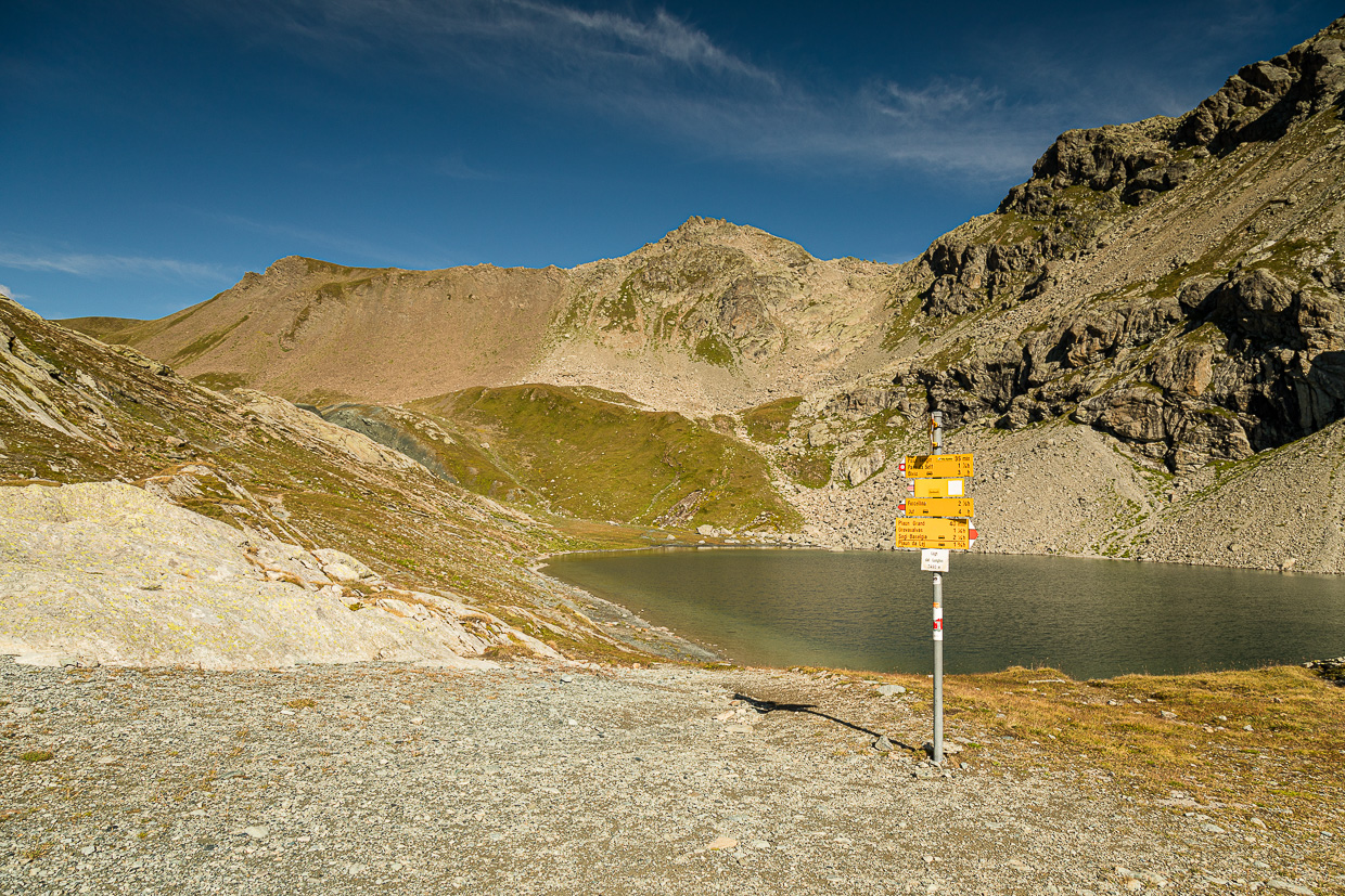 | Höhepunkte: | Blick auf die Seen und ins Bergell, Aussicht vom Gipfel, Wasserscheide auf dem Pass dal Lunghin |