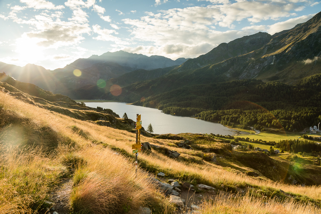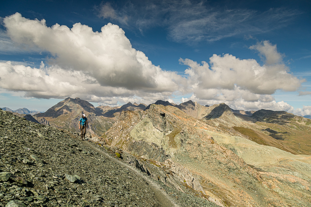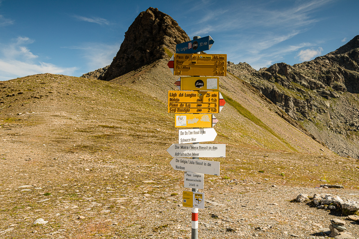 Eine sehr abwechslungs- und aussichtsreiche Wanderung führt auf den Piz Lunghin. Das ist aber noch nicht alles, da ist auch noch die einzige Dreifachwasserscheide am Piz Lunghin. Und hier ist auch die Quelle des Inns. Drei sehr gute Gründe für diese Wanderung.