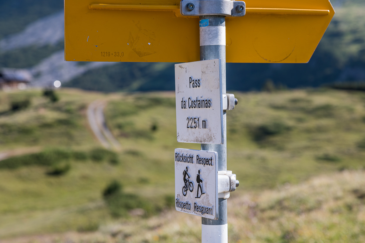 Der Pass da Costainas ist sowohl bei Wanderern wie auch Moutainbikern beliebt. Wenn man früh aufbricht, kommt man erst gegen Schluss in den Trubel. Die Landschaft ist grossartig und der God da Tamangur eindrücklich.