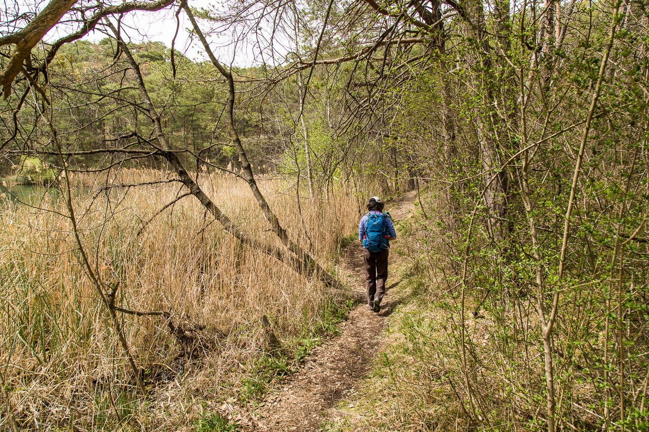 Wir erreichen nun das Gebiet der Teiche mit so schönen Namen wie Pfaffusee oder Rosensee. Wir umrunden den Pfaffusee, wo Frösche einen Riesenlärm veranstalten, der auch nicht verstummt, als eine Ringelnatter flink davon schwimmt. Beim Restaurant Ermitage wäre jetzt eine Pause angesagt, leider hat es geschlossen. Ein Bus sollte auch halten hier, allerdings nur auf Reservation, die natürlich nicht stattgefunden hat. So wandern wir weiter durch das hügelige Gelände, das von einem Bergsturz gestaltet wurde.