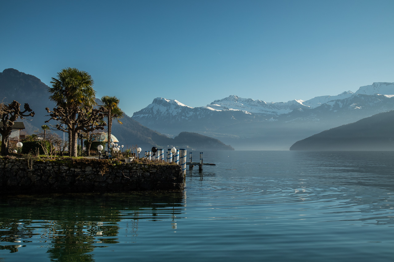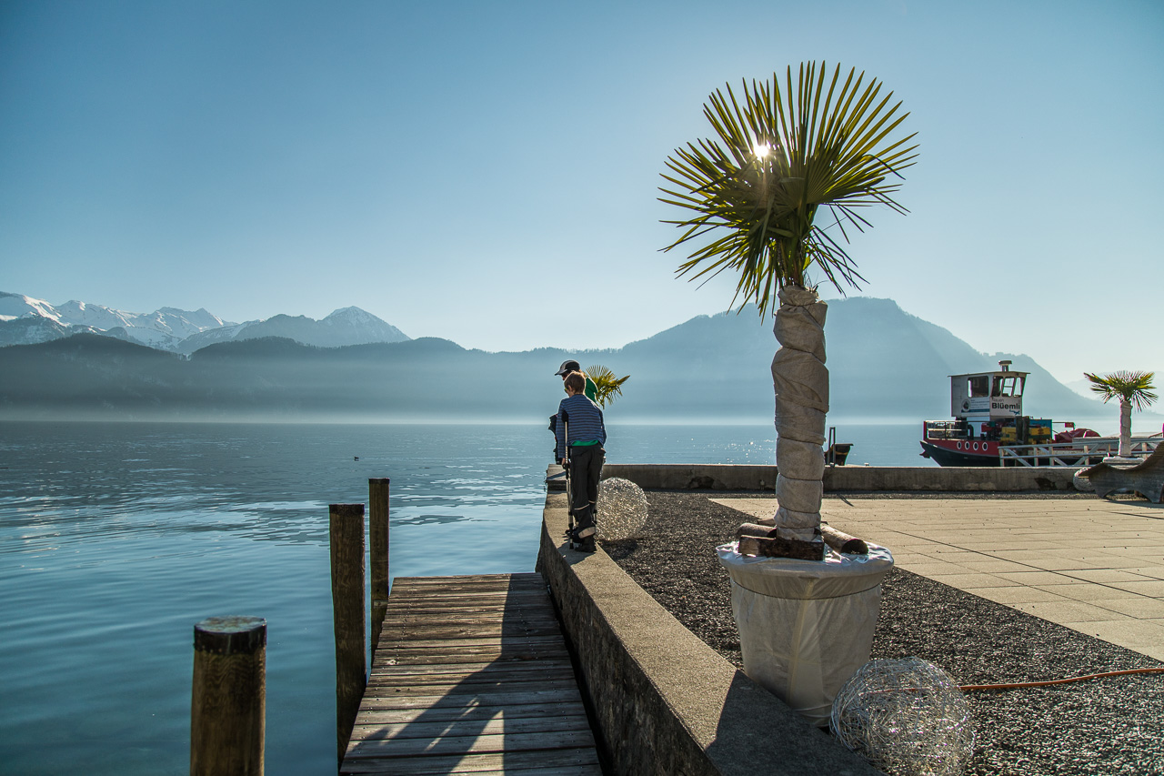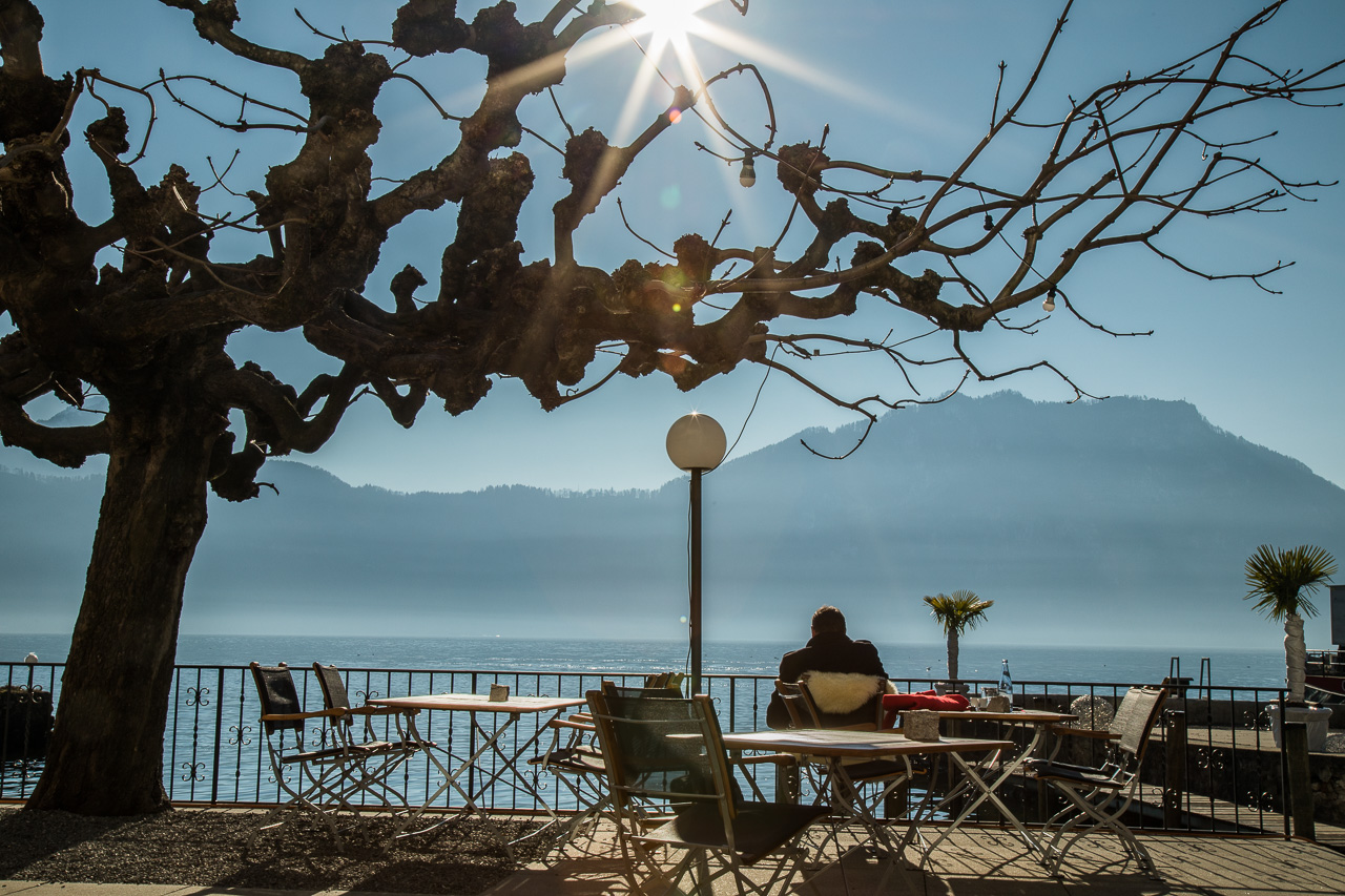 Auf dem Heimweg halten wir in Gersau beim Hotel du Lac. Auf der Terrasse an den Gestaden des Vierwaldstättersees geniessen wir die Wintersonne. Was für ein Tag!