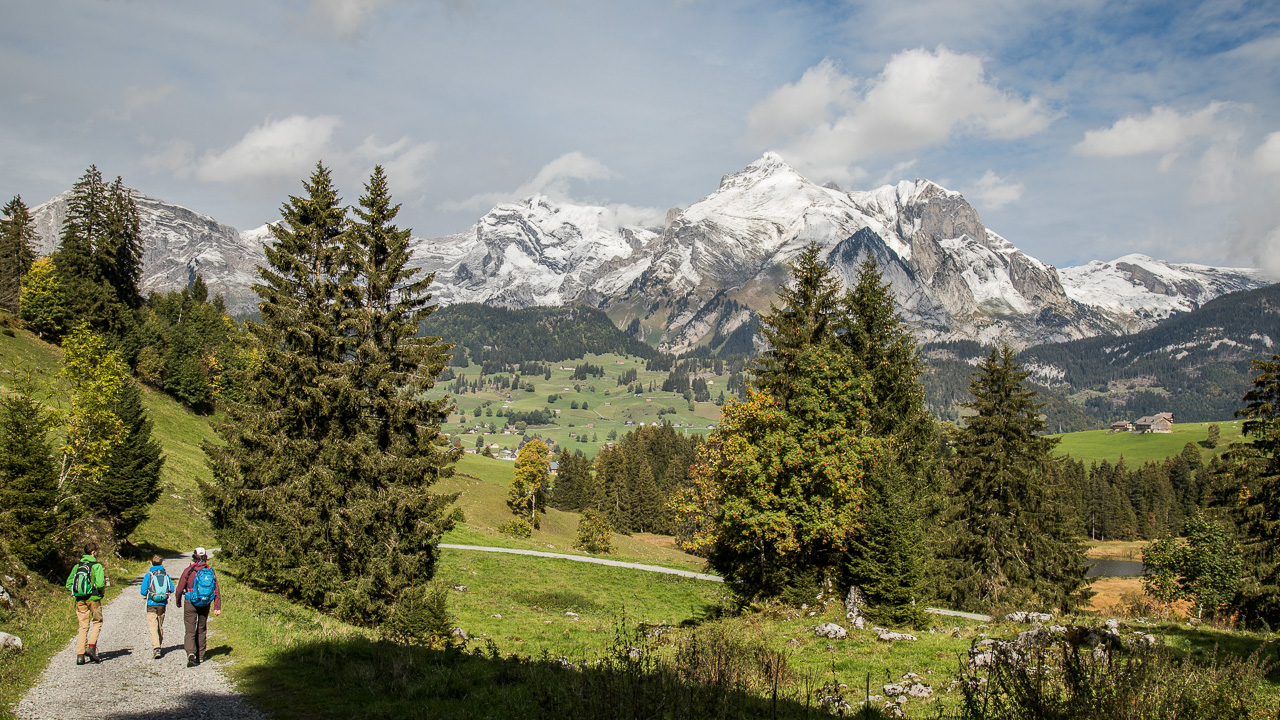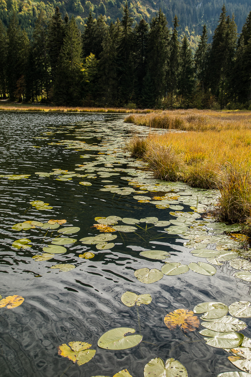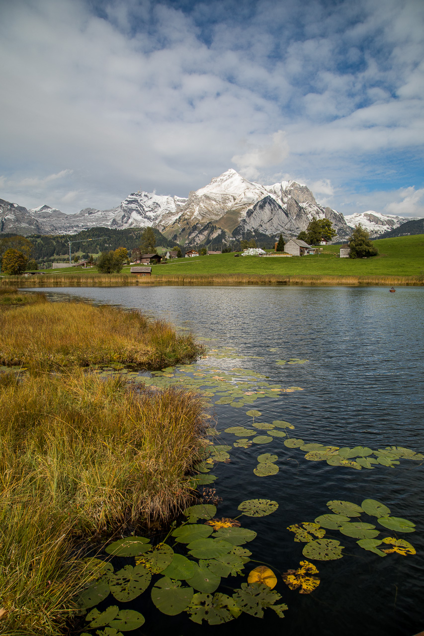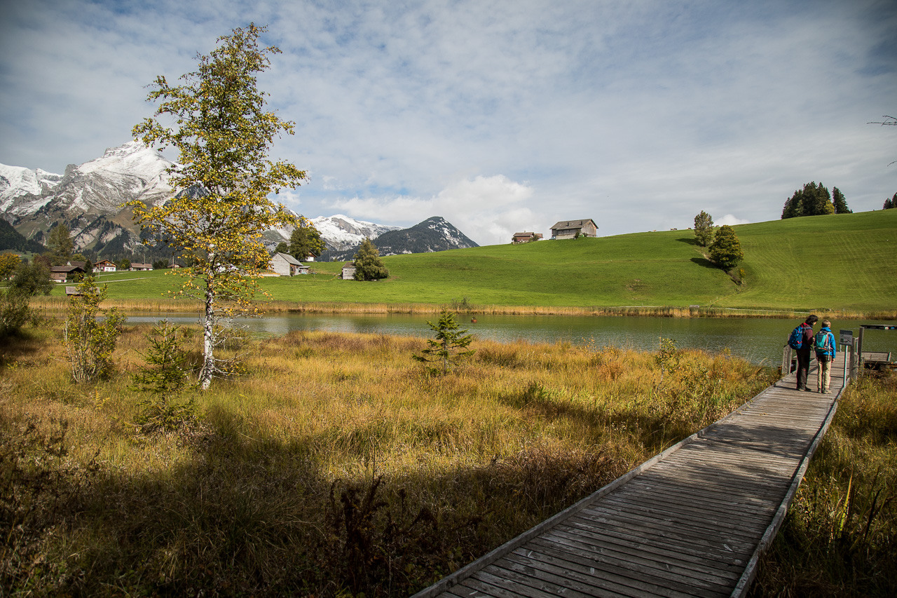 Weiter geht es zwischen den beiden malerischen Schwendiseen durch und hoch zum anderen Zweig des Klangweges. Vorbei an den Tonmühlen und über die Klangbrücke erreichen wir das Schaleglüüt, wo es richtig laut wird. Wir bringen schwere Kugeln zum Drehen in der Schale, was einen ziemlichen Krach erzeugt. Noch zwei Stationen, schon sind wir bei der Bergstation Oberdorf, wo der Weg endet.