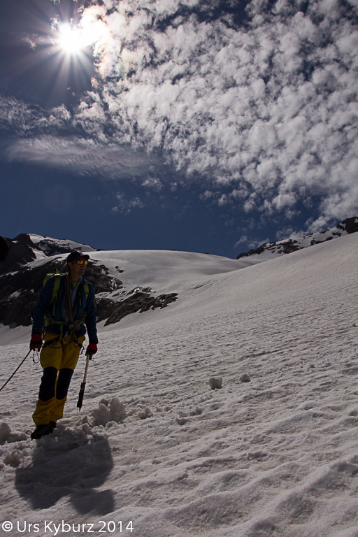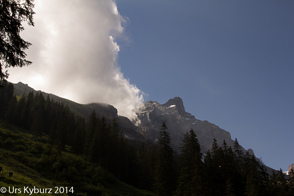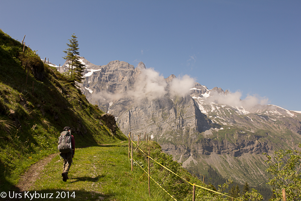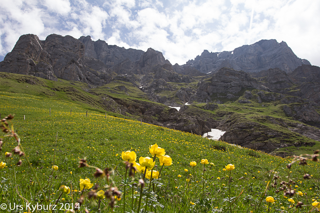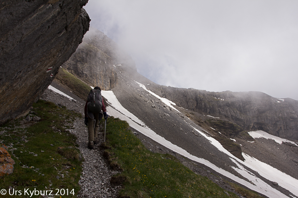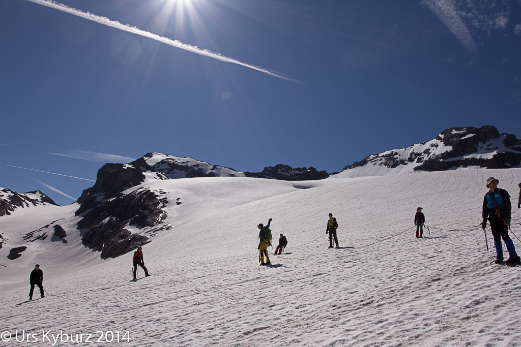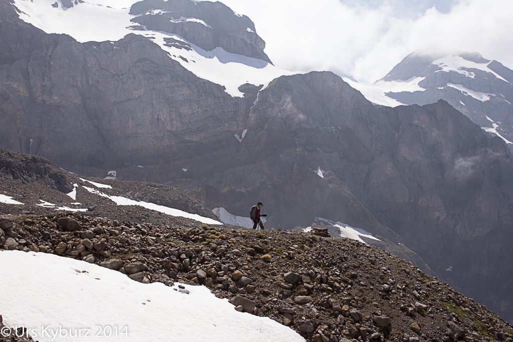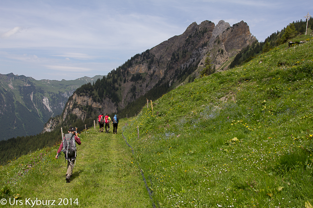 Kleinlaut rief der Tourenleiter am Donnerstag an, dass es dann doch mehr als 1300 Höhenmeter wären. Na gut, dann machen wir also eine Bergtour und prüfen die Kondition der Kinder. Der erste Teil führte durch den Wald, was angenehm war bei dieser Hitze. Und bei der Biwaldalp konnten wir auch noch den Durst löschen. Der zweite Teil der Wanderung war nun alpiner, er führte unter dem Uri Rotstock durch. Die Runsen, welche wir queren mussten, waren zum Teil immer noch mit Schnee gefüllt. Aber auch das Queren von solch heiklen Passagen muss geübt werden, gibt es doch immer wieder schwere Unfälle durch Ausrutschen auf Schnee. Ohne Pickel möchte ich jedenfalls hier nicht durch, schon gar nicht mit einer Gruppe.