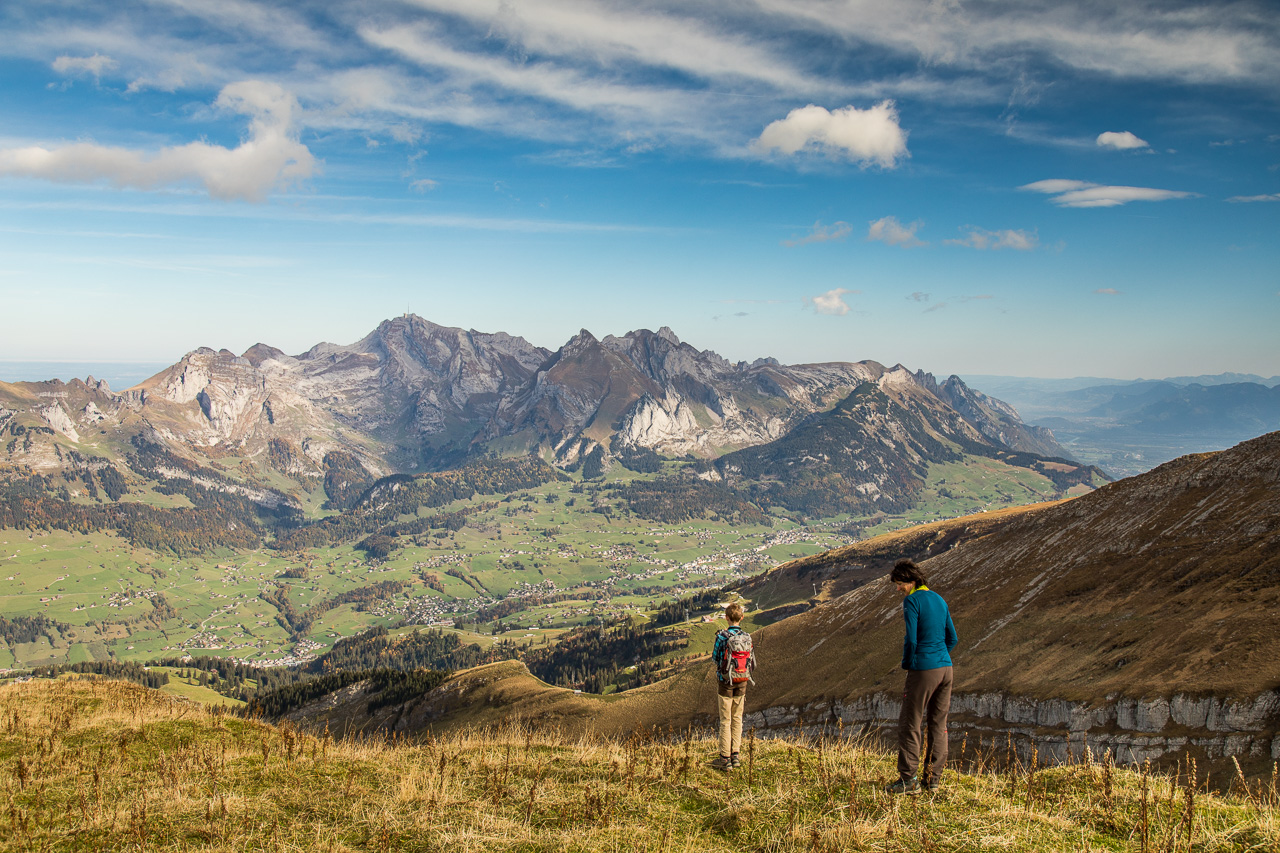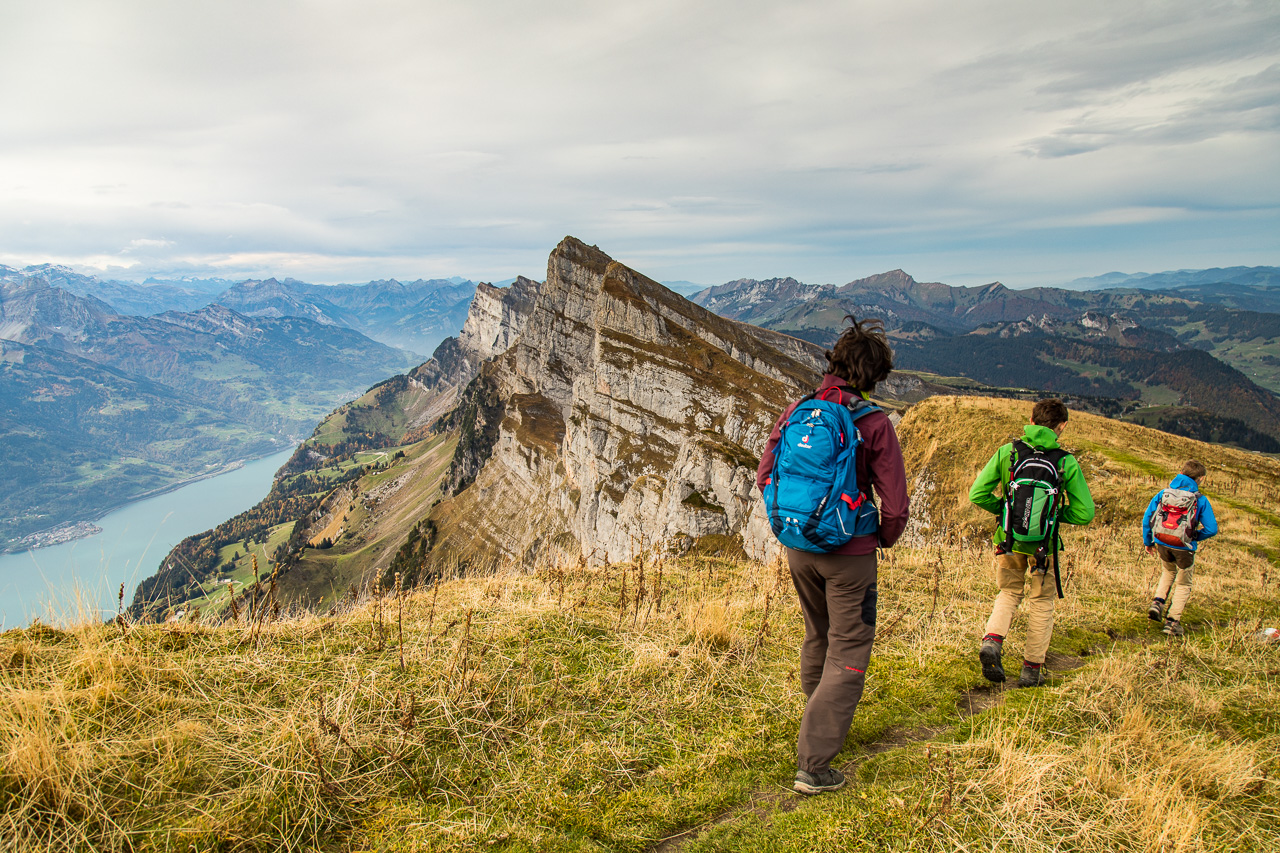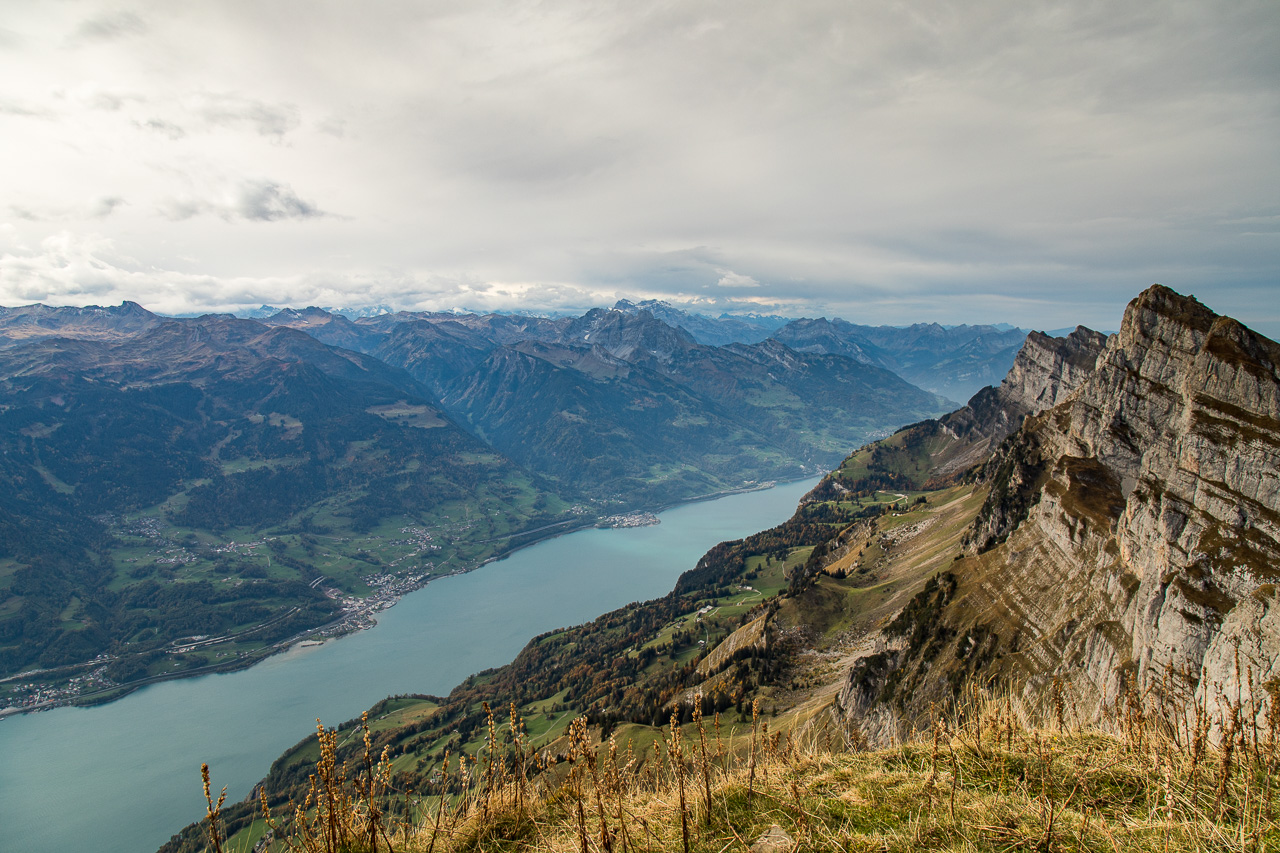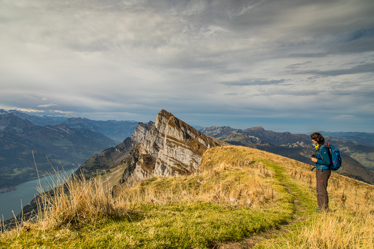 Auf dem Weg nach Graubünden fährt man an ihnen vorbei, an den Churfirsten. Dieser Gebirgszug am Walensee fällt gegen diesen fast senkrecht ab. Auf der Toggenburger Seite sind sie wanderbar, aber zum Teil sehr anspruchsvoll – und grossartig.