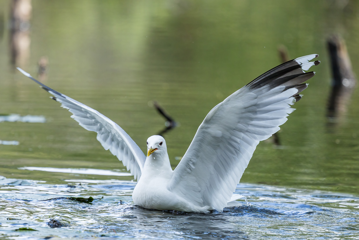 Wir kommen an einen kleinen See, eine Zwergtaucherfamilie schwimmt umher, die kleinen betteln um Futter. Sturmmöwen fliegen umher, zanken sich um Brot, das Besucher ins Wasser geworfen haben. Dann sehen wir unsere ersten Kanadagänse, sie ist allerdings ein Neozooe. Was wir noch nicht wissen: Wir werden noch ganz, ganz viele sehen. Auf dem Meer sind sie die häufigsten Gänse, während im Inland die Graugänse dominieren. Ein Anruf ereilt mich vom Autovermieter, den ich aber zu spät sehe. Zeit, zurückzukehren und im Büro nachzufragen. Hoffentlich gibt es keine Probleme? Stellt sich heraus: Sie wollten uns nur warnen, dass ich ein Elektroauto reserviert hätte. Also alles palleti, genau das war mein Plan.