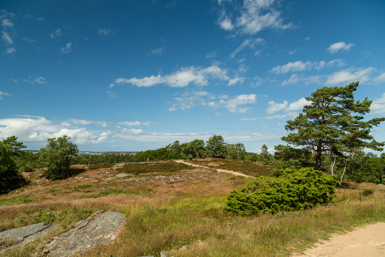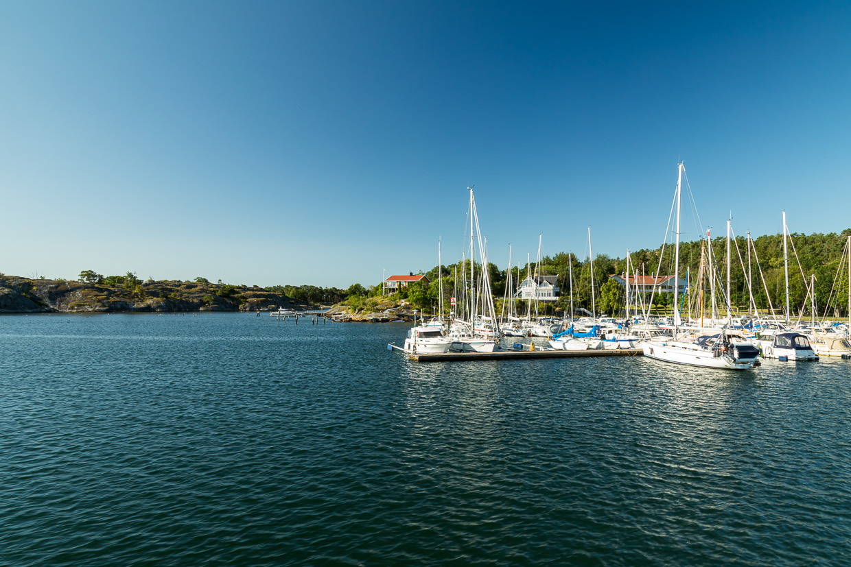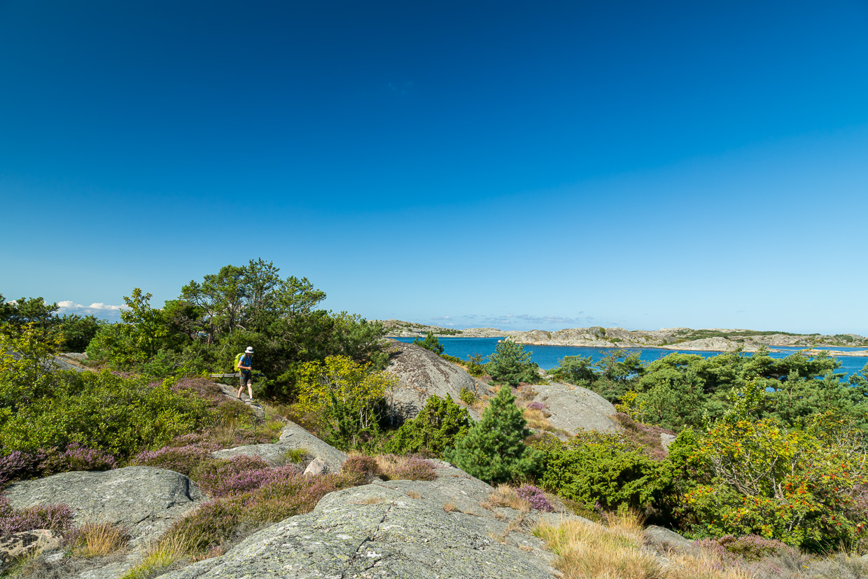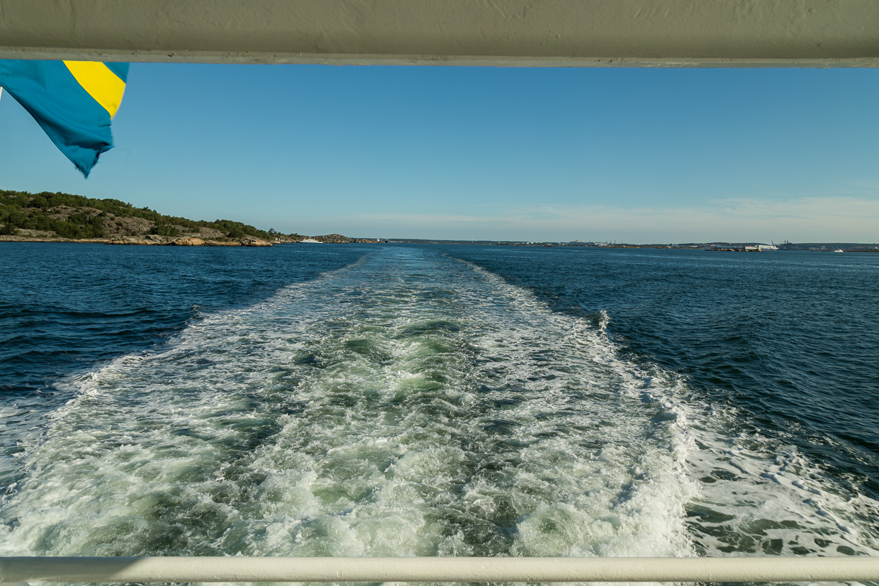 Ein letztes Mal nutzen wir unseren 3-Tages-Pass für die öffentlichen Verkehrsmittel von Göteborg. Dazu zählen auch die Fähren auf die Inseln, was wir uns nicht entgehen lassen. So besteigen wir nach längerem Hin und Her am Vortag das Schiff nach Styrsö. An der Endstation steigen wir aus. Der Frau gefällt es nicht, so dass wir wieder einsteigen. Kurz darauf fährt das Schiff zurück. Bei der nächsten Haltestelle steigen wir doch wieder aus. Von dort wandern wir endgültig los. Es dauert eine Weile, bis wir den Asphalt verlassen und auf dem Wanderweg gehen können.