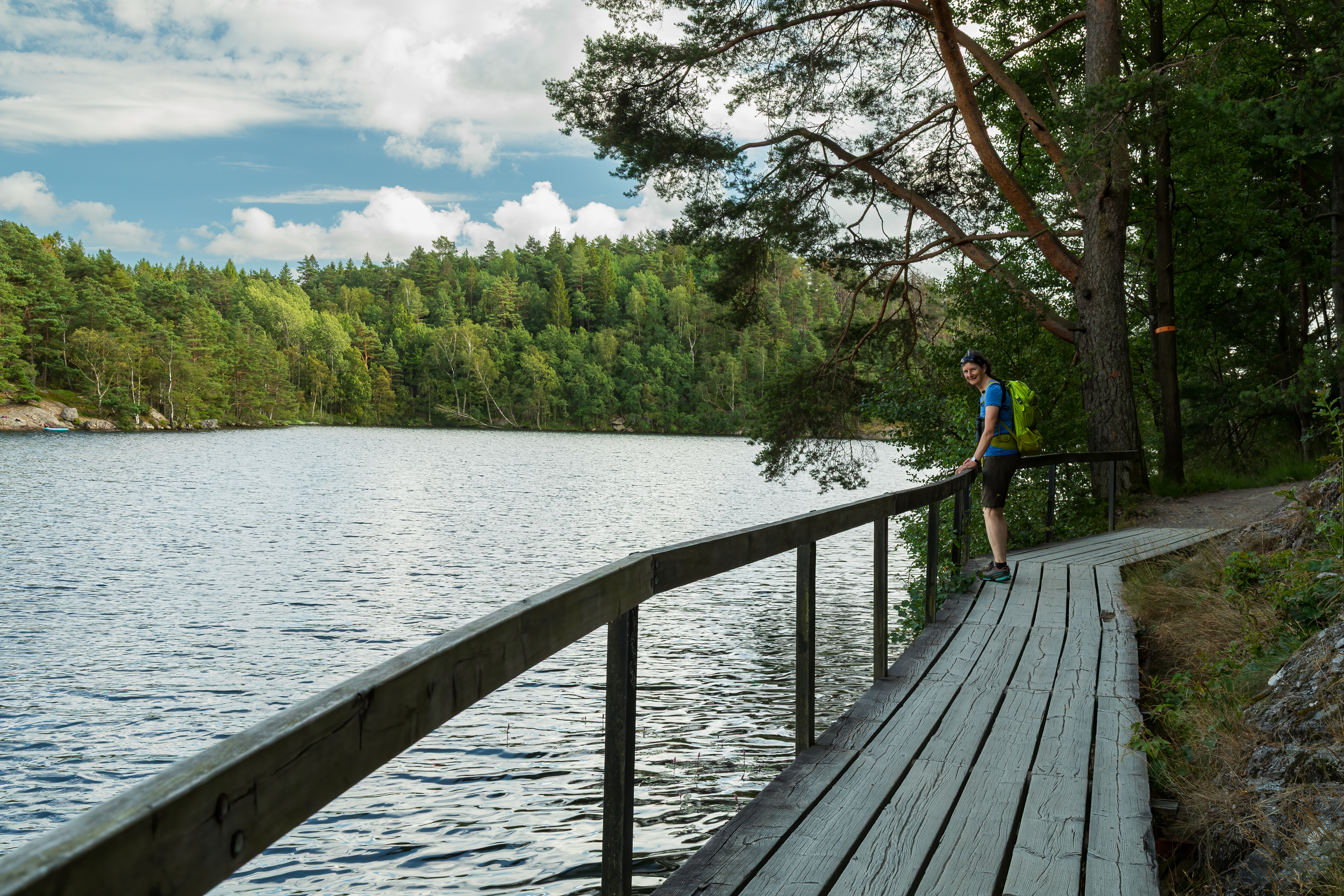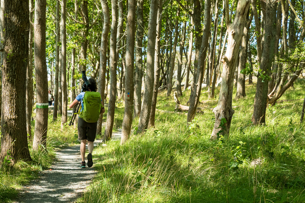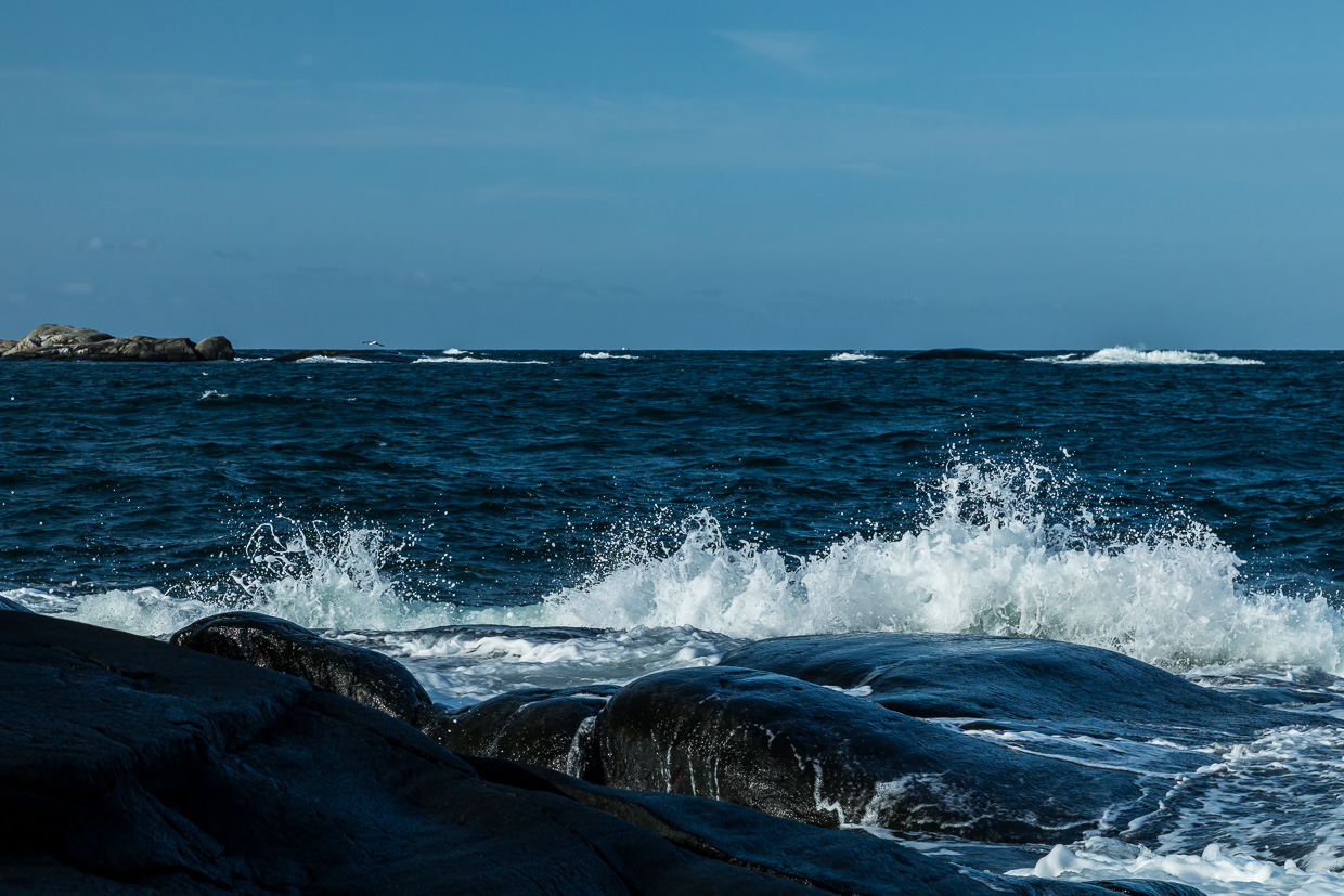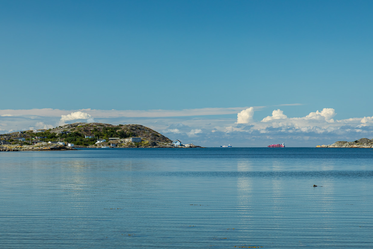 Ein letztes Mal nutzen wir unseren 3-Tages-Pass für die öffentlichen Verkehrsmittel von Göteborg. Dazu zählen auch die Fähren auf die Inseln, was wir uns nicht entgehen lassen. So besteigen wir nach längerem Hin und Her am Vortag das Schiff nach Styrsö. An der Endstation steigen wir aus. Der Frau gefällt es nicht, so dass wir wieder einsteigen. Kurz darauf fährt das Schiff zurück. Bei der nächsten Haltestelle steigen wir doch wieder aus. Von dort wandern wir endgültig los. Es dauert eine Weile, bis wir den Asphalt verlassen und auf dem Wanderweg gehen können.