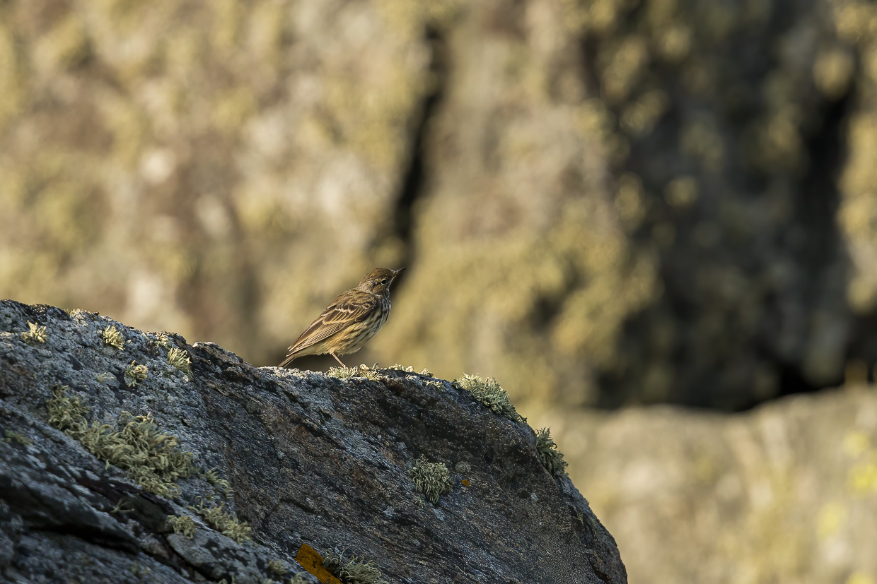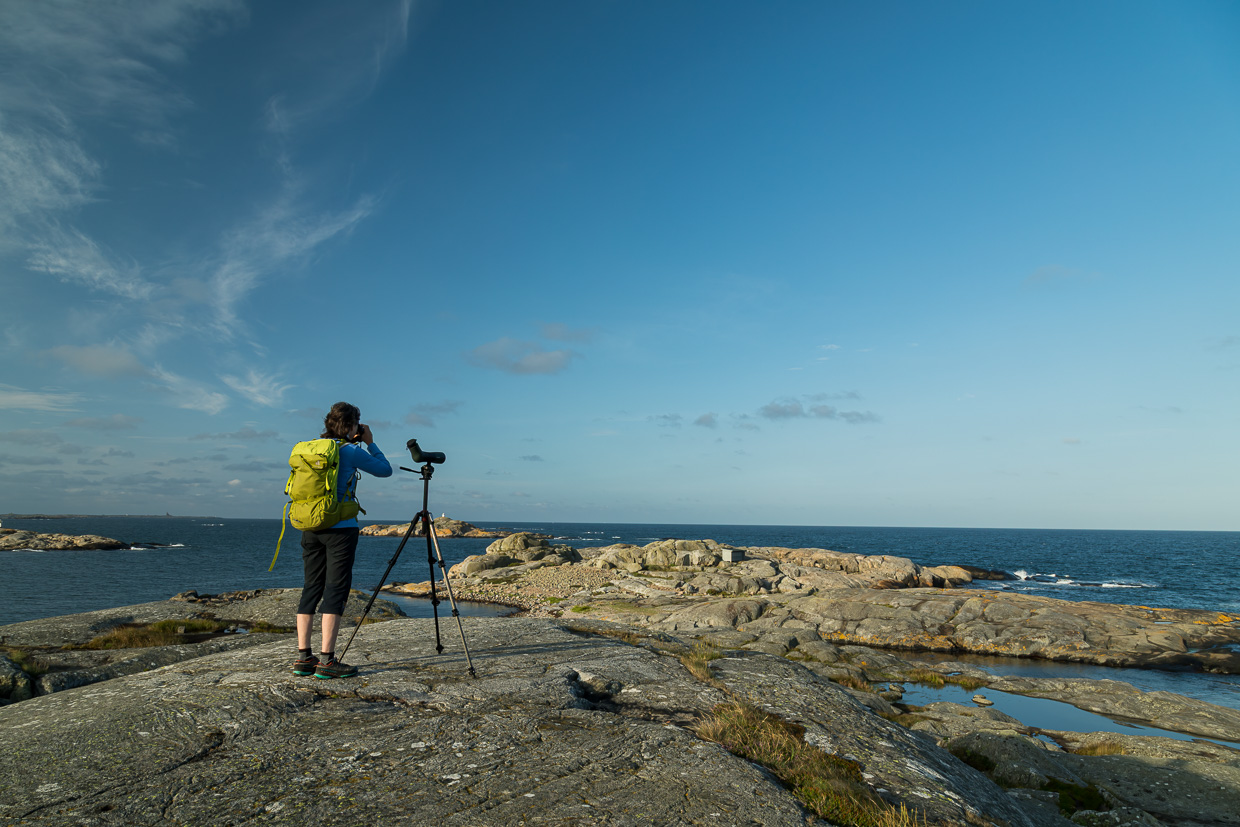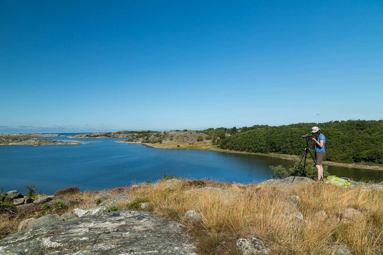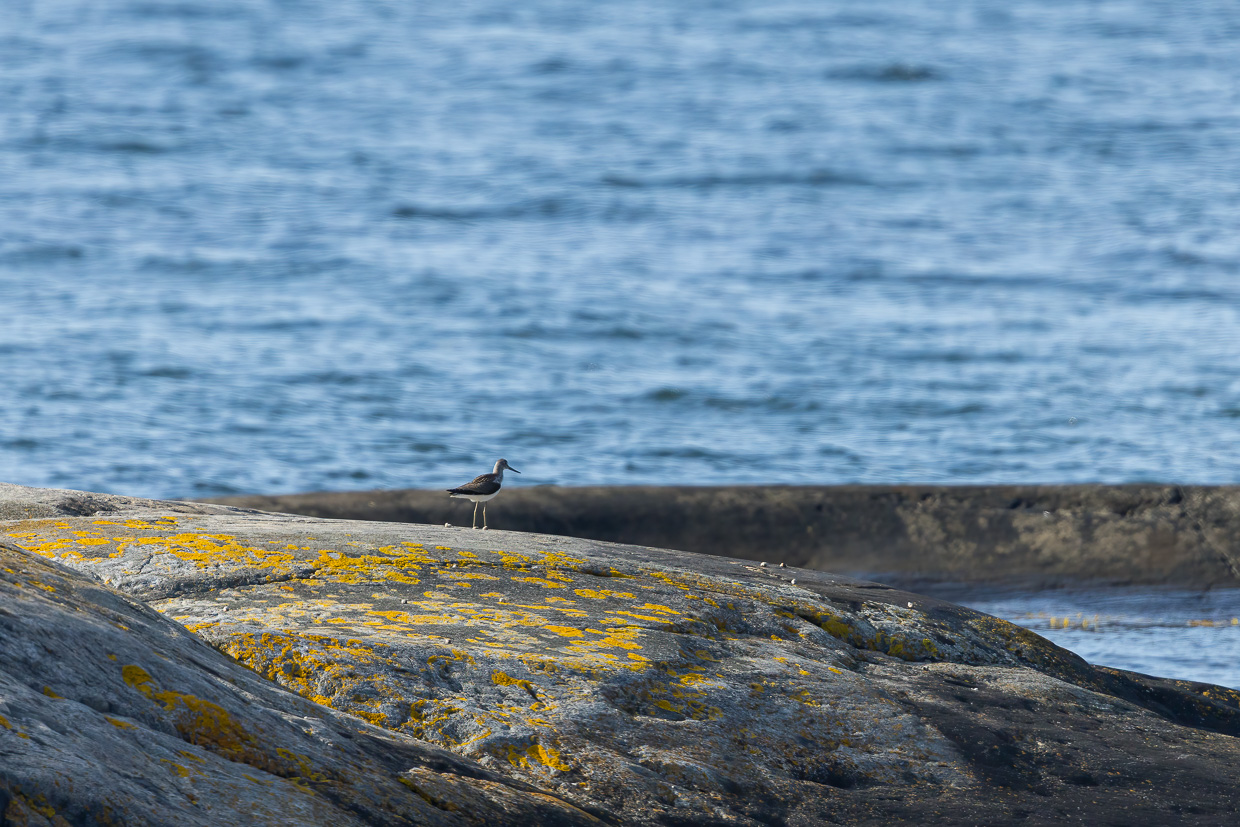 Nach gut vier Wochen herumreisen kehren wir wieder nach Göteborg zurück, wo wir das Auto zurückgeben. Vorher aber nutzen wir die Gelegenheit nochmals und fahren auf die Insel Hönö, die nur mit der Fähre, aber schwierig mit dem ÖV zu erreichen ist. Im äussersten westlichen Zipfel ist das Naturreservat Kråkudden, das über einen Rundweg erwandert werden kann. Wie immer sind wir früh dran, die Temperaturen sind noch angenehm. Wir sind nur kurz im Wald, bevor wir felsiges Küstenland erreichen. Zu unserer Überraschung treffen wir dort, mitten in den Felsen und relativ weit ab eines Waldes, einen jungen Grünspecht an. Auch zahlreiche Wiesenpieper finden wir, aber auch Steinschmätzer und Bluthänflinge.