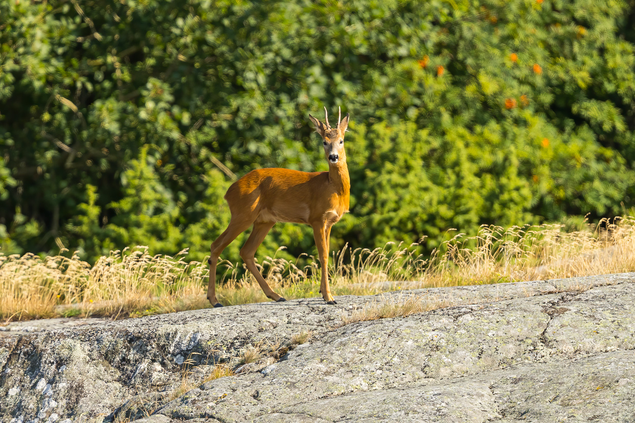 Wir gehen weiter der Küste entlang, finden Grünschenkel und natürlich auch das obligate Küstenreh. Schön sind auch die sich am Ufer brechenden Wellen, Vögel sind aber keine besonderen auszumachen