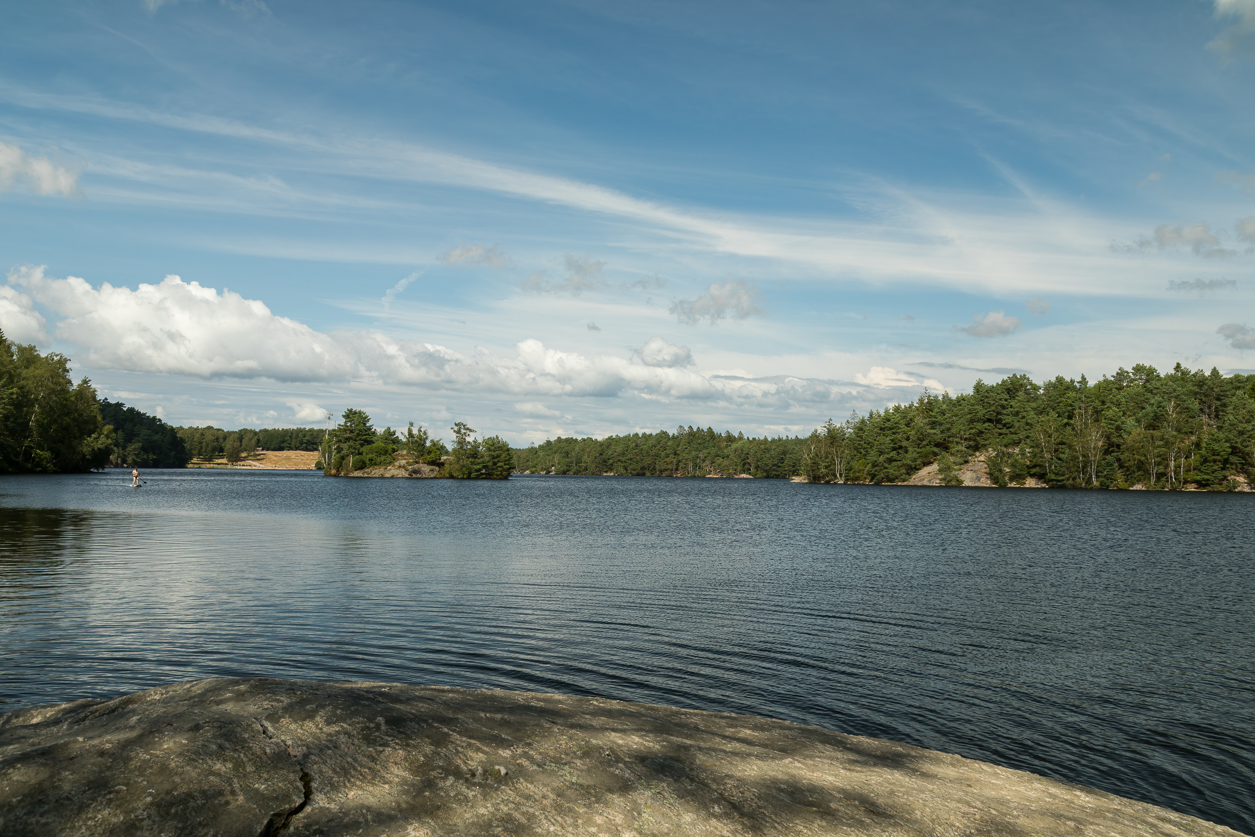Gleich neben Göteborg liegt ein See, der Stora Delsjön. Wir haben mit einem ehemaligen Arbeitskollegen von mir zum Mittagessen abgemacht in Mölndal (es hat übrigens geschmeckt in der Pizzeria Mums). Um die langweilige Latscherei durch den Autoverkehr zu vermeiden, nehmen wir den Bus bis zur Haltestelle Kallebäck. Nun heisst die Schuhe schnüren und los. Wir irren zuerst noch etwas auf dem Golfplatz umher, bevor wir den See erreichen. Er ist von Wald umgeben, man würde nicht ahnen, dass er gleich neben einer Grossstadt liegt. Es hat einige Leute, ist aber nicht überlaufen. Nichtsdestotrotz wäre ich lieber am Morgen früh unterwegs, dann sähen wir wohl auch mehr Tiere.