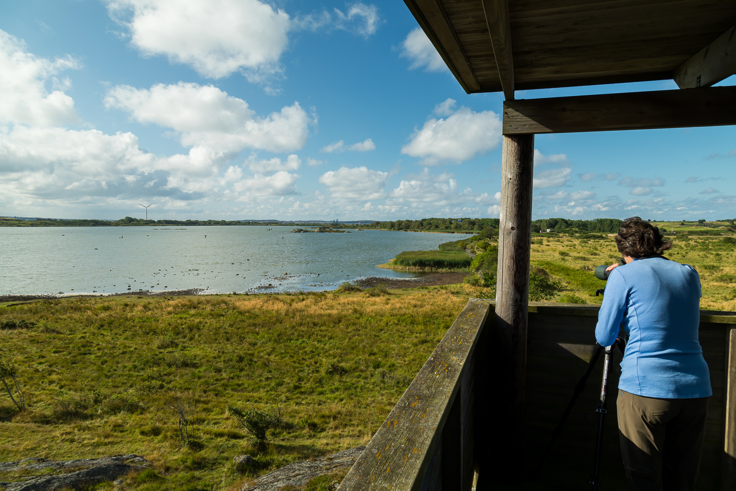 Torslanda ist geprägt von Volvo, dem schwedischen Hersteller von robusten Autos und Nutzfahrzeugen. Aber ohne Auto muss man zuerst mal dort hin kommen. Wir nehmen Tram und Bus, was noch gut funktioniert. Zwischen unserer Haltestelle und dem Naturschutzgebiet Torslandaviken liegt aber leider ein Kreisel, in den mehrere grosse Strassen münden, ohne irgendeine Möglichkeit für Fussgänger, diese regulär zu überqueren. So warten wir einen ruhigen Moment ab und überqueren irregulär die Strassen. Wir erreichen den Pfad, der durchs Naturreservat führt, auf welchem wir dem Beobachtungsturm zustreben. Viele Vögel sehen wir nicht von hier oben, ein paar Enten, ein paar Kormorane. Ein anderer Besucher kommt mit uns ins Gespräch, verrät, wo es noch gute Gebiete zum Beobachten gibt. Tönt gut, leider sind die ausserhalb unserer Reichweite und unseres Zeitplanes.