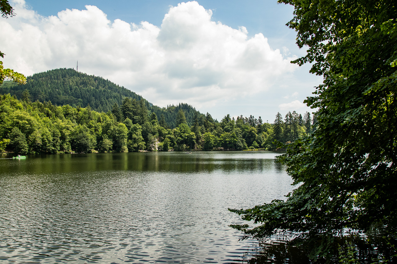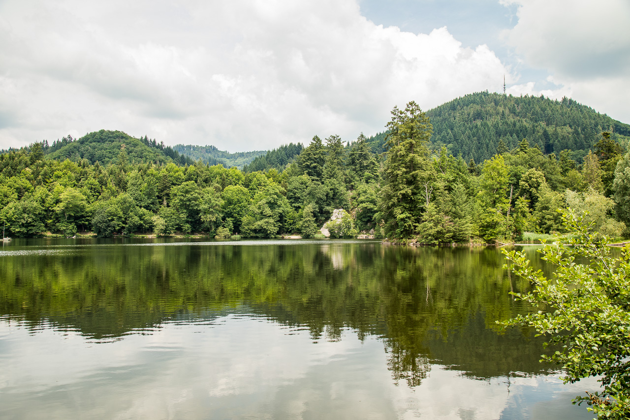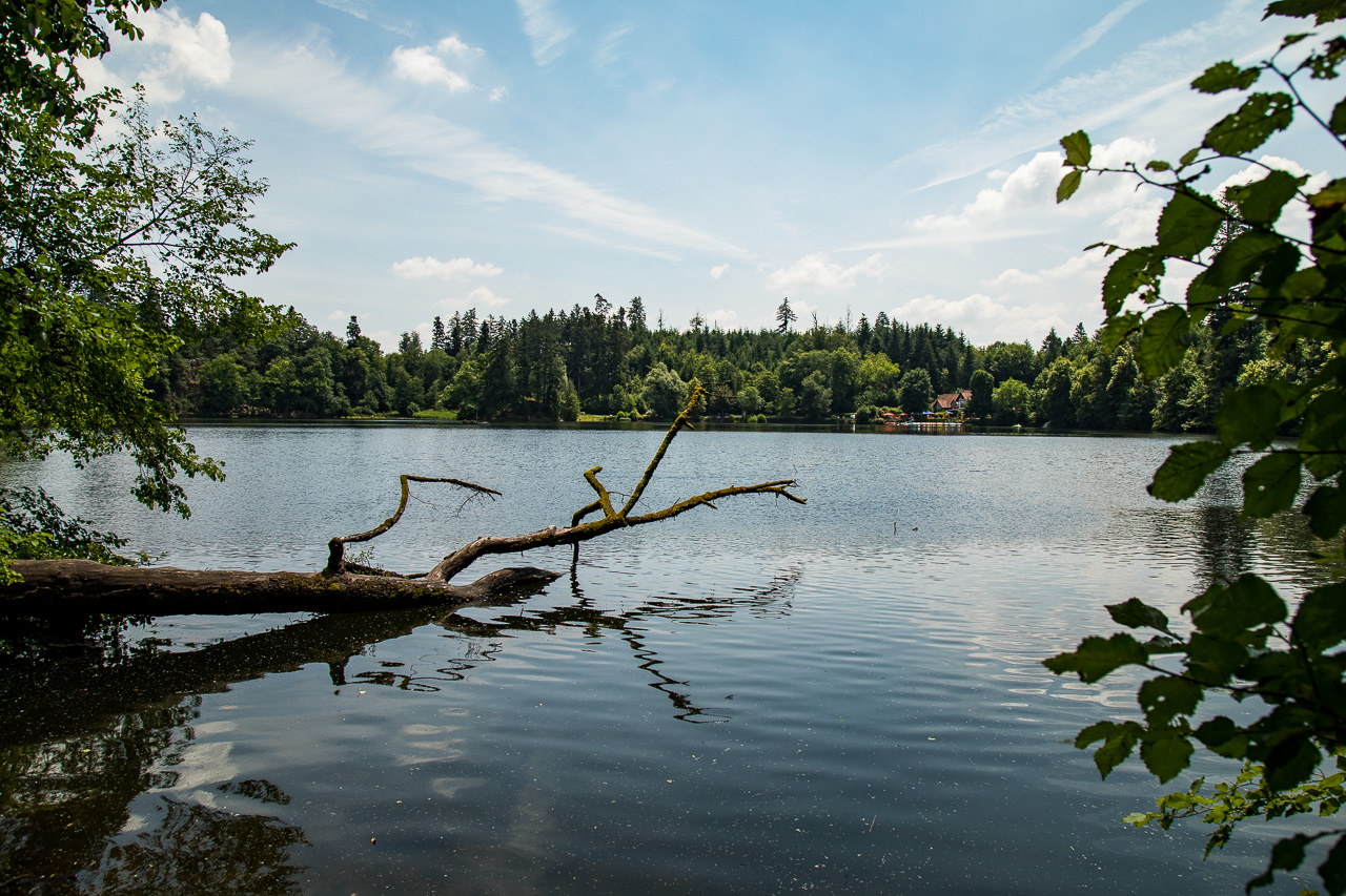 Wir sind ja auf dem Weg in die Natur, der Bergsee ist unser Ziel. Ja, so heisst er, ziemlich grossspurig für einen See in hügeligem Gelände, wo weit und breit keine Berge sind, wie ich finde. Nach einer kurzen Wanderung durch den Wald erreichen wir das idyllische Gewässer. Wir umrunden den See auf einem flachen Weg, der auch für Kinderwagen und Rollstühle geeignet ist. Im Moment halten sich die Menschenmassen noch in Grenzen, aber ich denke, an einem schönen Sonntag ist hier ganz schön was los. Nach der Runde kehren wir ein und löschen unseren Durst, denn es ist ziemlich heiss. Für den Rückweg wählen wir einen anderen Weg durch den Wald, wir begegnen kaum jemandem.