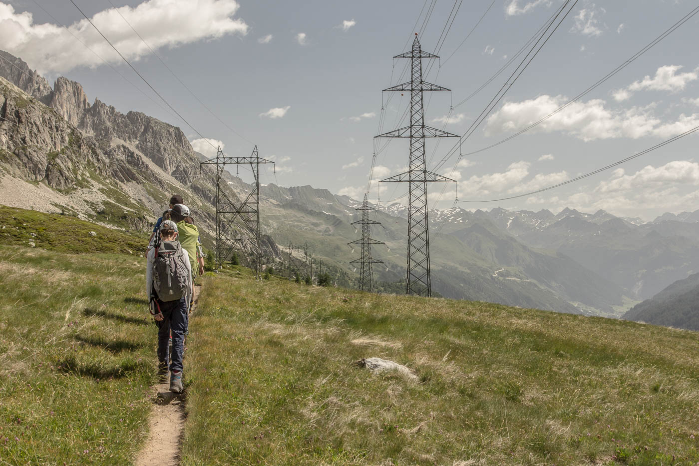 Im Bedrettotal gibt es aber nicht nur Natur pur, wir wurden durch die Hochspannungsleitungen ständig daran erinnert, dass wir halt eben nicht in einer Wildnis unterwegs waren. Das ist der Preis der zivilisatorischen Annehmlichkeiten. Unser erstes Zwischenziel war der Lago delle Pigne, ein hübscher, kleiner Bergsee. Dass das ein schönes Plätzchen ist, wussten auch andere, standen dort doch bereits zwei Zelte. Die Felsen dort eignen sich gut zum Klettern, wir waren vor langer Zeit mal am Poncione di Cassina Baggio unterwegs. Während wir uns stärkten, schauten wir den Kletterern zu.