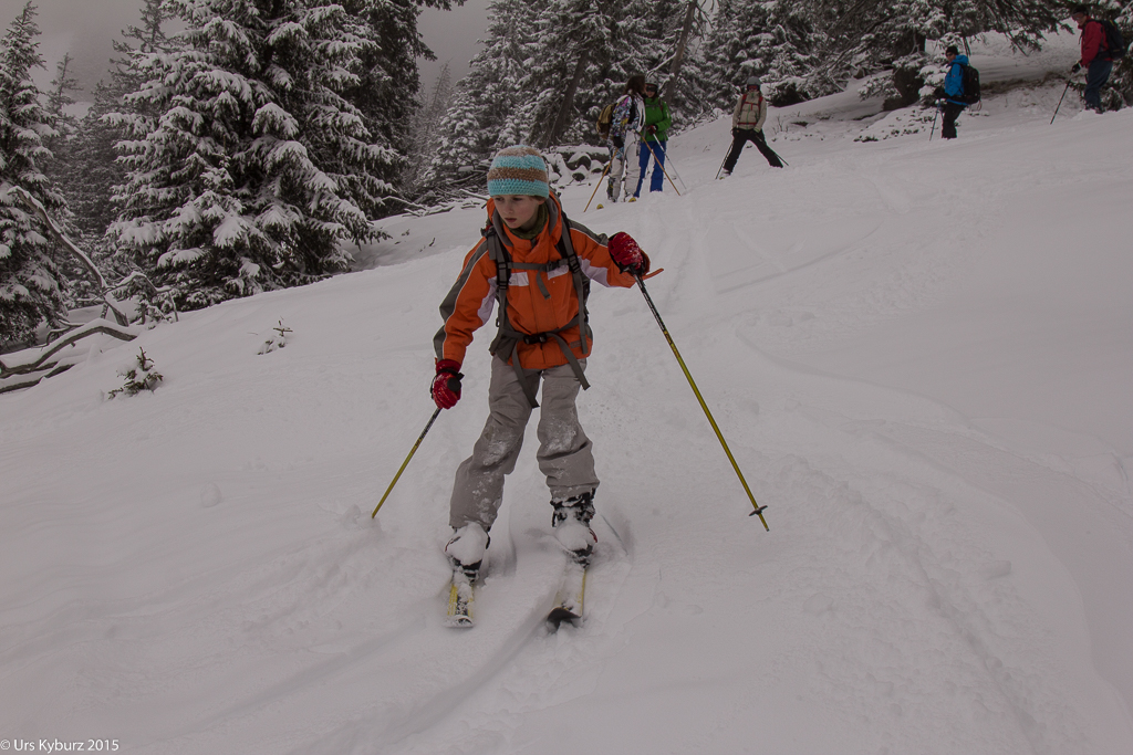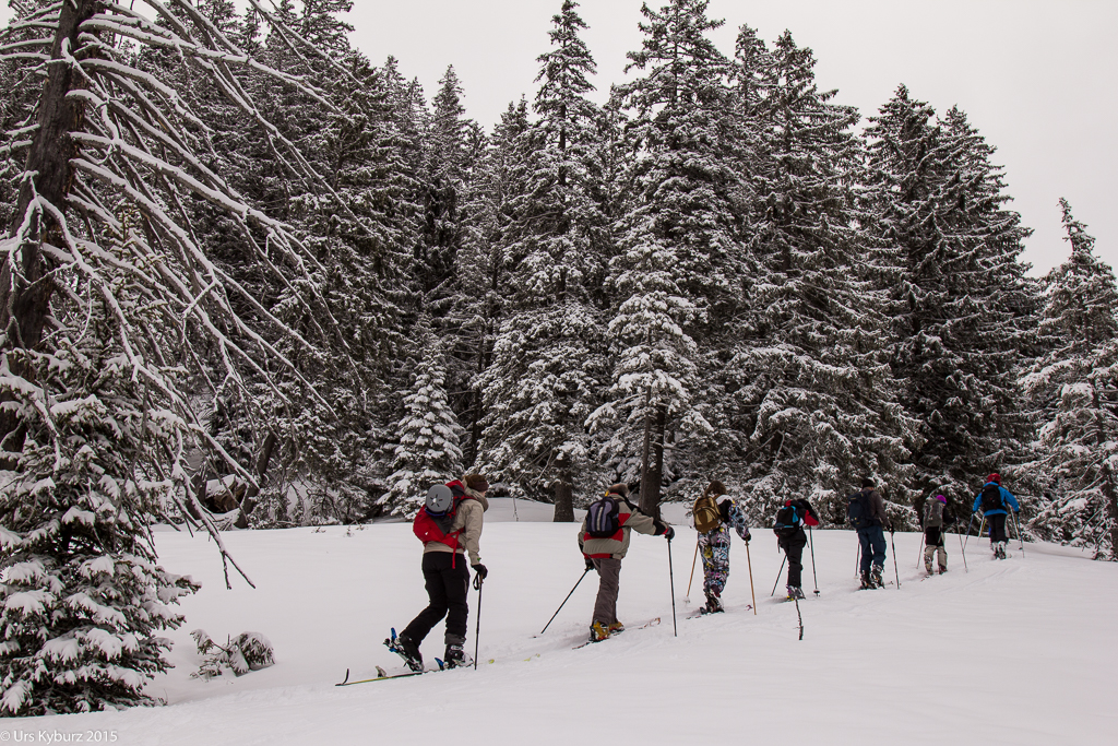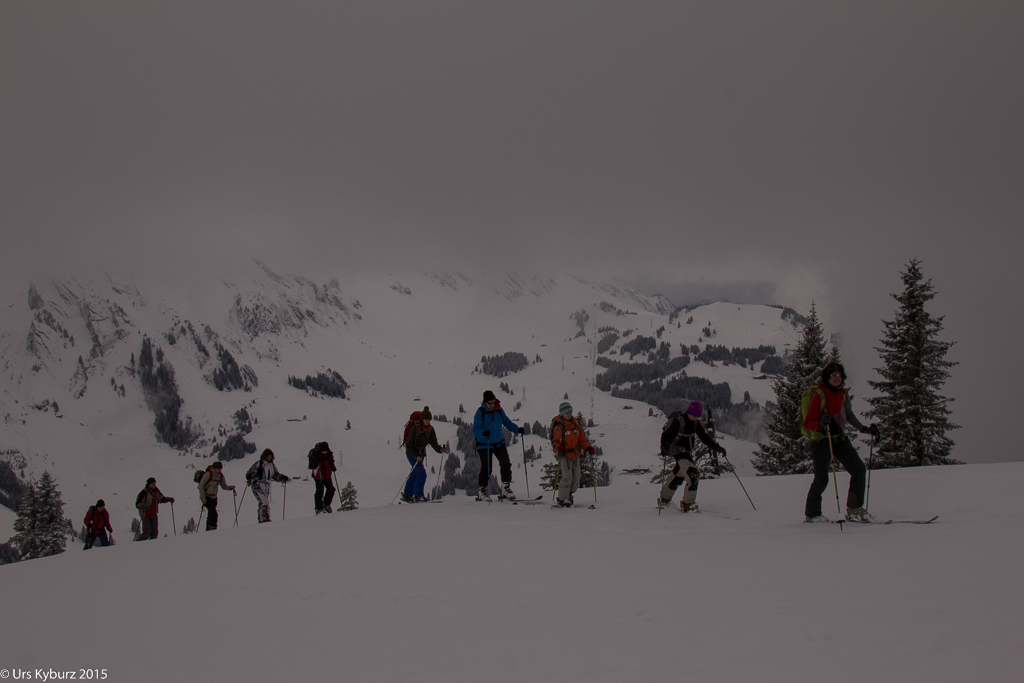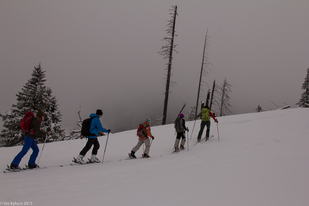 Der SAC Homberg, genauer meine Frau, organisierte eine Skitour, speziell ausgerichtet auf Familien. Da boten sich die 600 Höhenmeter von Sörenberg auf die Heimegg an, einem Grat. Die untere Hälfte der Tour befand sich auf luzernischem Boden, die obere auf Obwaldner Gebiet. Schwierigkeiten bot die Tour keine, ausser dass es nicht allzu viel Schnee hatte und wir die ursprünglich geplante Route nicht gehen konnten. Was ein Glücksfall war.