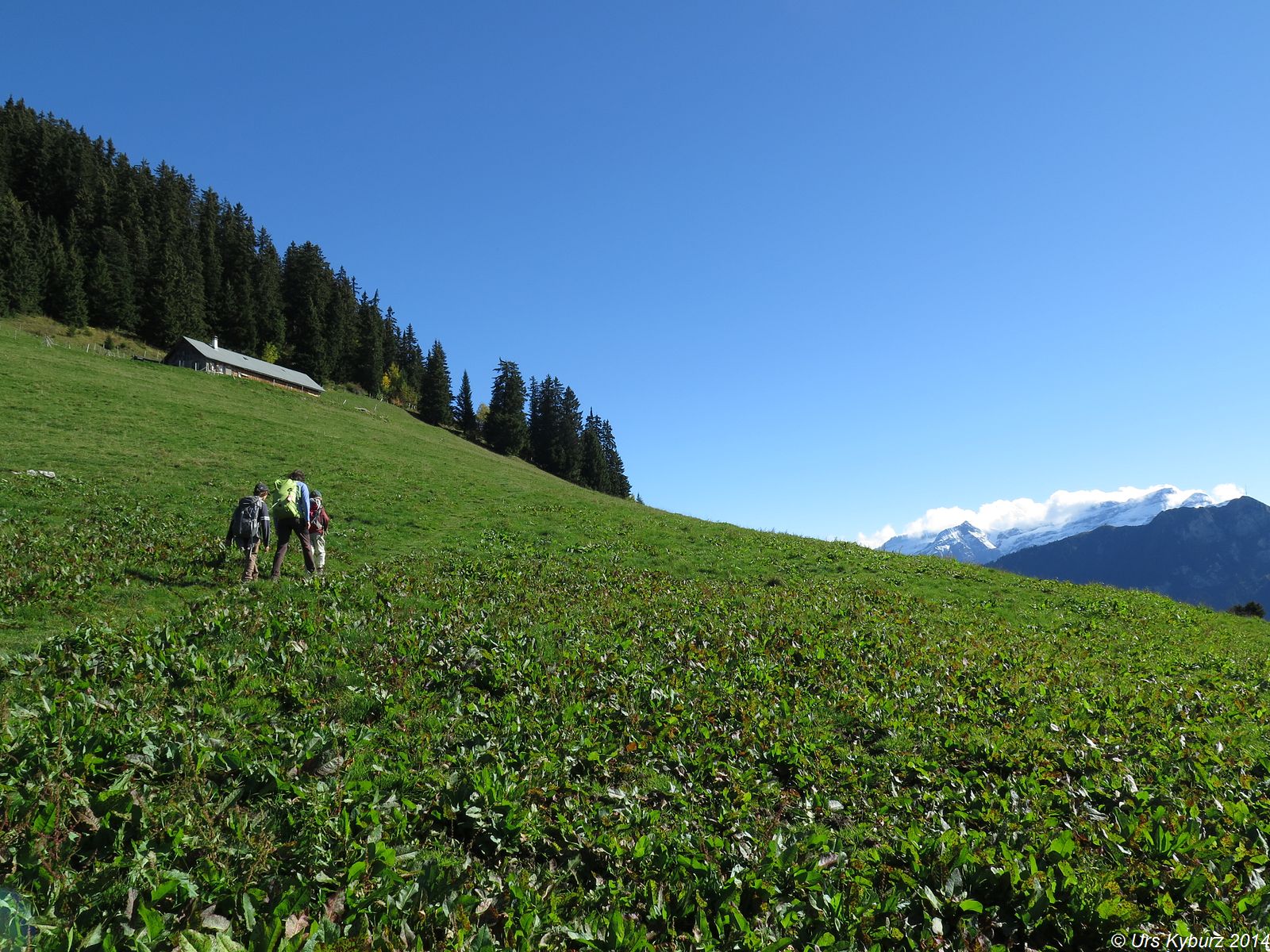 Familientauglichkeit: Sehr gut möglich bis Prafandaz (Trapperpfad für Kinder). Weiter über La Riondaz mit grösseren Kindern, keine besonderen Schwierigkeiten.