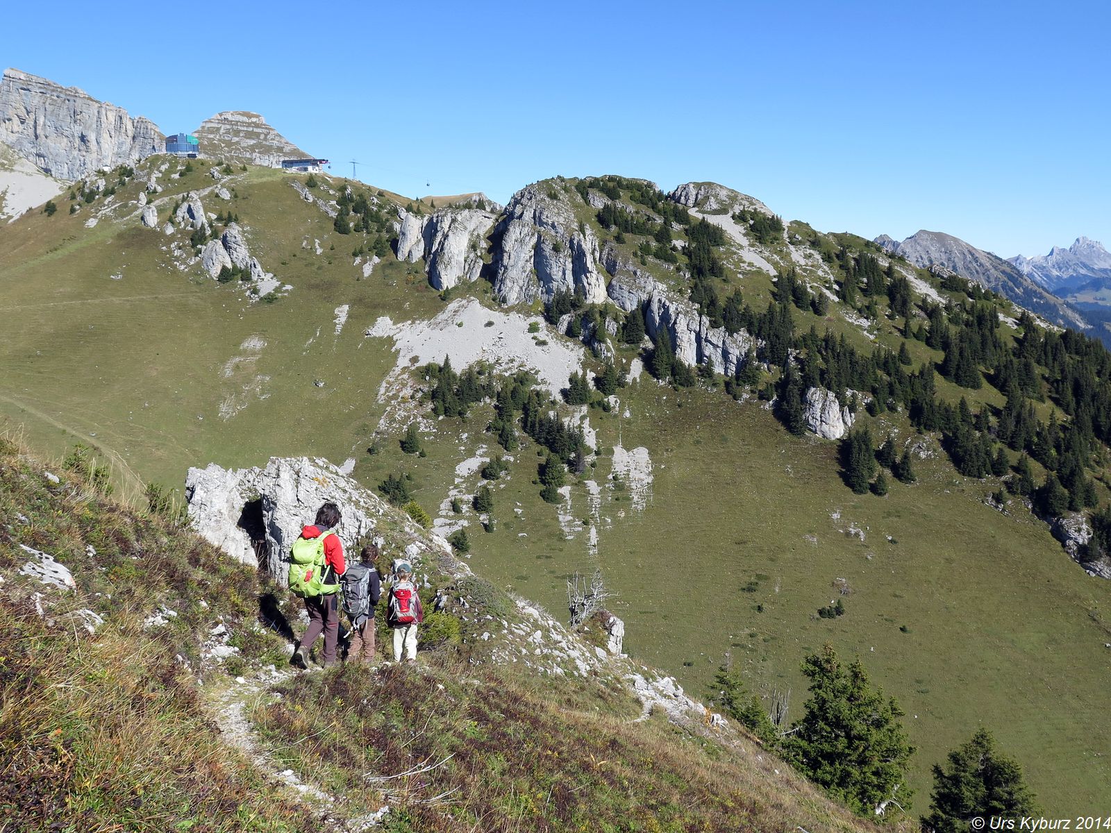 Diese Wanderung ist sehr gut geeignet für Familien. Ein Trapperpfad, der wissenswertes über die Bergwelt auf spielerische Art und Weise vermittelt, motiviert die Kinder zum Wandern. Wenn sie noch frisch und spritzig sind nach dem Ende des Lernpfades, kann mit der La Riondaz noch ein Gipfel angehängt werden.