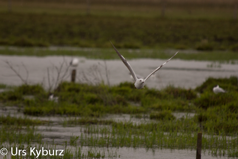 Auch ein Paar Mittelmeermöwen ist am Brüten, Blässhühner und Stockenten rudern umher, weit hinten ist eine Rohrweihe auf Nahrungssuche. Sonst ist aber nicht viel los hier. Wir gehen deshalb weiter zum nächsten Hide. Hier blicken wir auf einen anderen Teil des Sees und auf die Riedwiese. Hier ist es ungleich spannender. Kiebitze flattern umher wie Schmetterlinge, Lachmöwen kreischen auch hier, im Sumpf stochern Bekassinen mit ihren langen Schnäbeln nach Fressbarem.