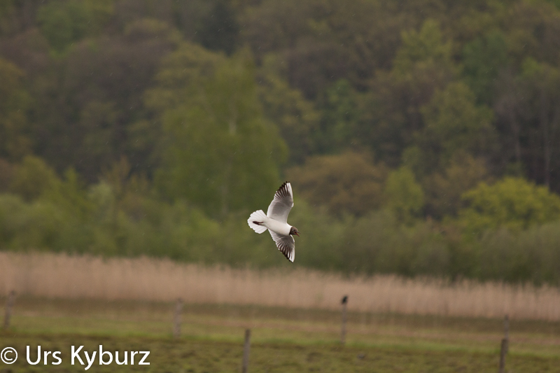 Nun wird’s aber Zeit, nach draussen zu gehen. Auf einem Steg bewegen wir uns zwischen dem Schilf, erreichen dann eine Strauchzone, wo eine Nachtigall lauthals ihr Lied schmettert. Eine Maus huscht im Laub umher, im Teich jedoch ist nicht viel los. So steuern wir den ersten Hide an. Wir haben freien Blick auf einen kleinen See und die Brutinseln der Lachmöwen. Diese veranstalten einen Heidenlärm.