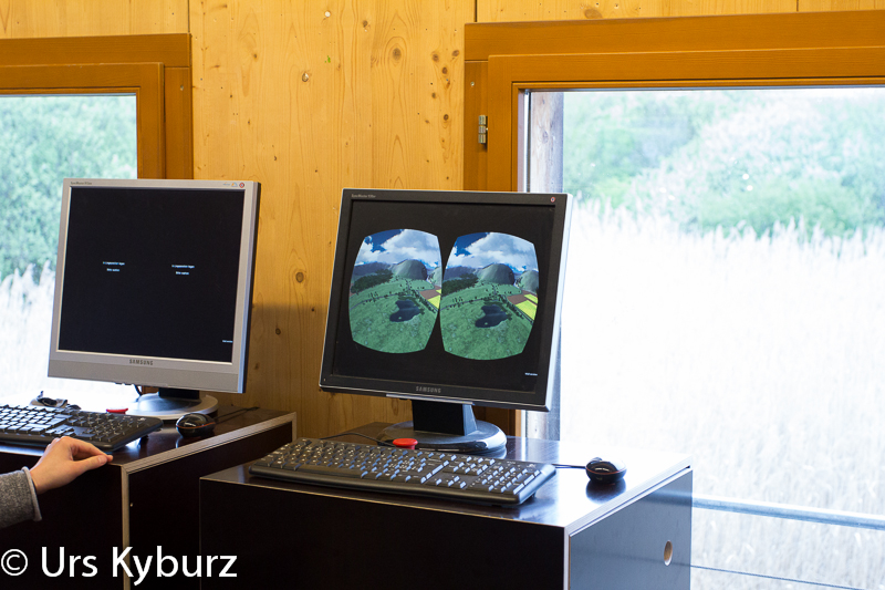 Eine Sendung von Einstein, der Wissenssendung von SRF, konnte auch unseren Gipsträger überzeugen. Auszuprobieren gab es dort nämlich einen Vogelflugsimulator: Man legt sich auf ein Gerüst, das sich je nach Fluglage neigt, setzt eine 3D-Brille auf und verwandelt sich dann so in einen Vogel. Und tatsächlich: Man fühlt sich dann wirklich wie ein Vogel, die Arme werden zu Flügel, man schwebt über Landschaften, kann im Sturzflug nach unten stechen und auch landen. Oder abstürzen.