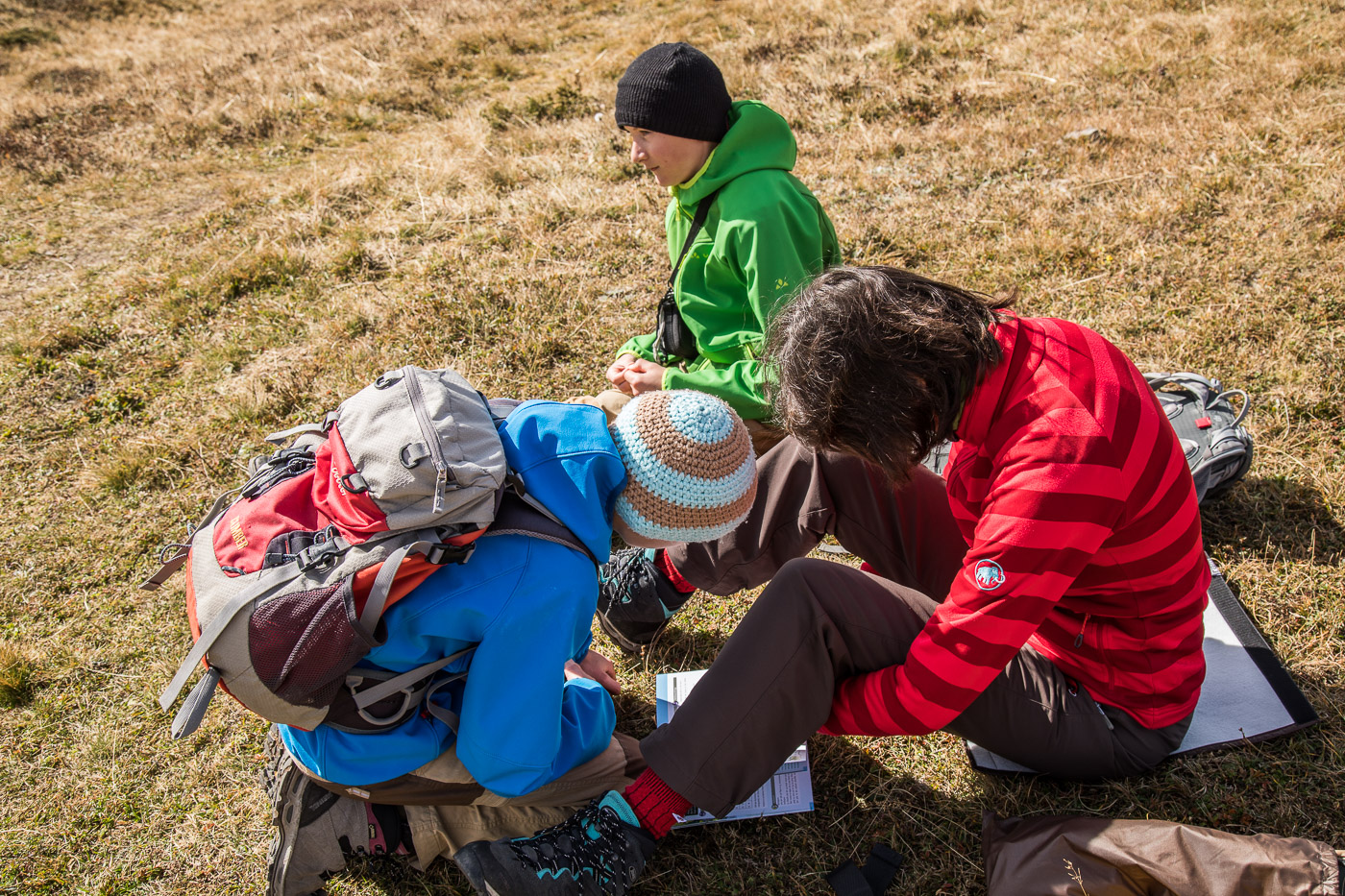 Bereits als Jugendlicher war ich hier – und war ganz fasziniert. Deshalb gehört die Alp Flix zum Pflichtprogramm in unseren Ferien. Wir schauen also auf der Tourismusinfo vorbei und erhalten das Forscherset: Eine grosse Röhre mit Tragbändel. Was da wohl drin sein mag? Wir starten auf der Alp Flix unsere Wanderung.