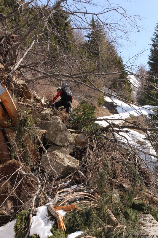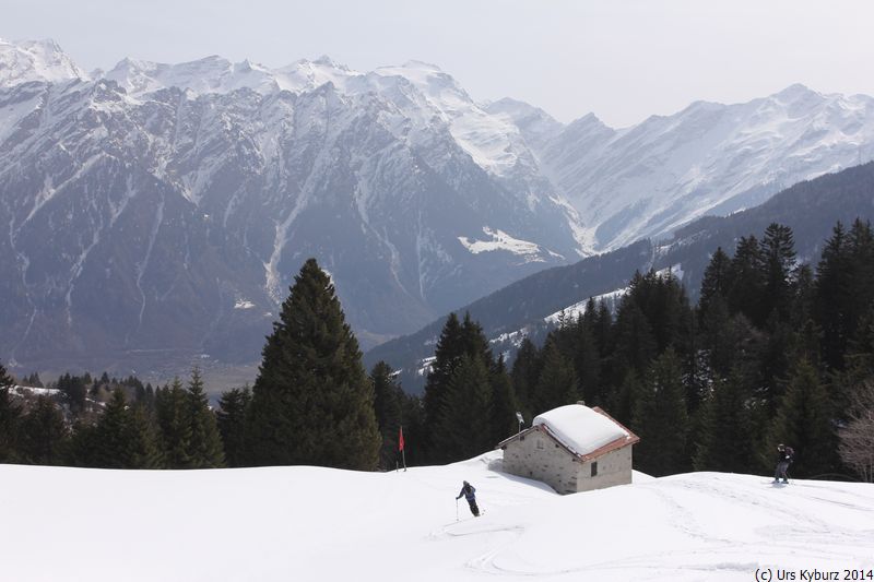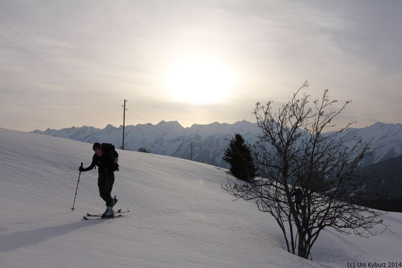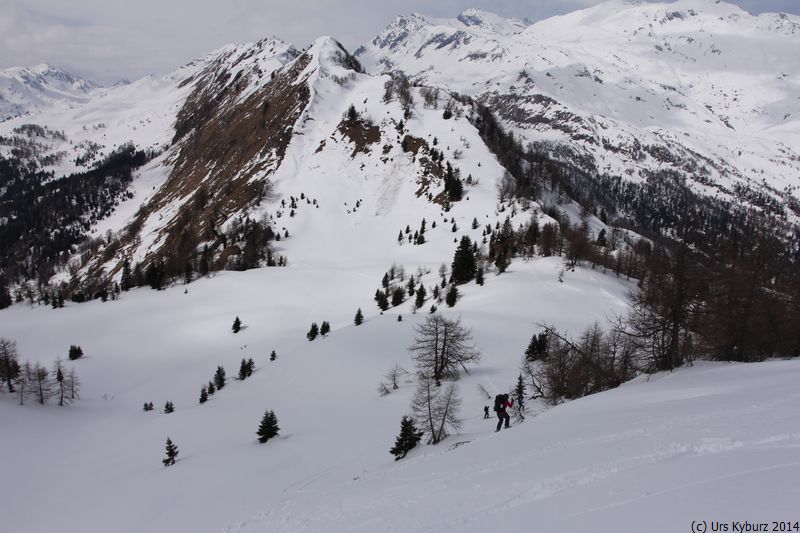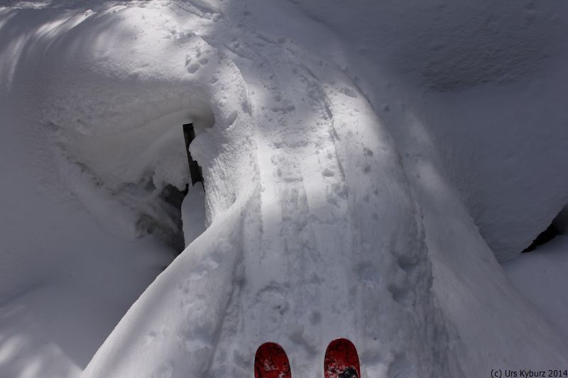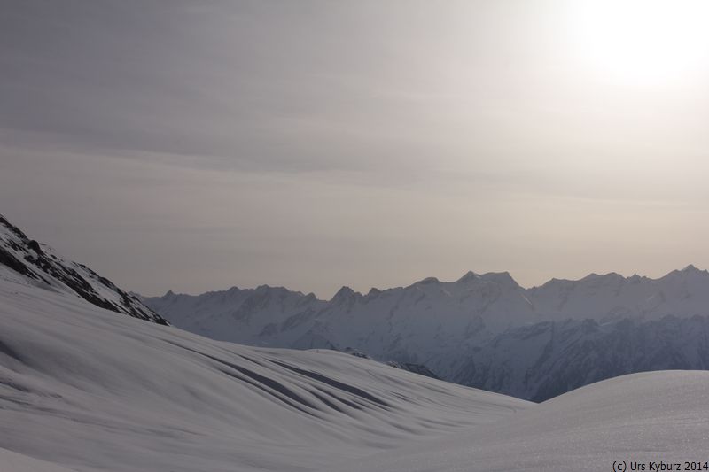 Die Abfahrt ist erwartungsgemäss nicht ganz einfach im nassen Schnee, in Fachkreisen „Edelpflotsch“ genannt. Aber wir erreichen Anvéuda sicher, wir sind aber noch nicht am Ziel.