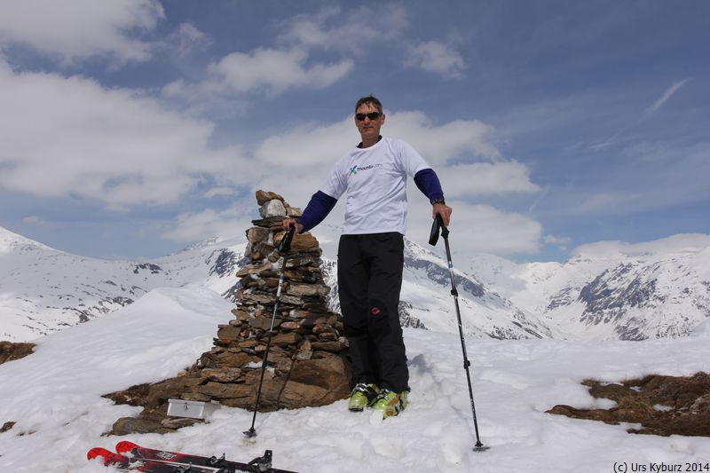 Der Vorteil, wenn man bei der Umstellung auf die Sommerzeit in einer Hütte übernachtet, ist der, dass man froh ist, wenn man endlich aufstehen kann. Dann vermisst man die fehlende Stunde auch nicht. So machen wir uns am nächsten Morgen früh auf den Weg zum Pizzo di Cadreigh. Die Schneedecke ist nun durchgefroren, was das Gehen wesentlich einfacher macht.
