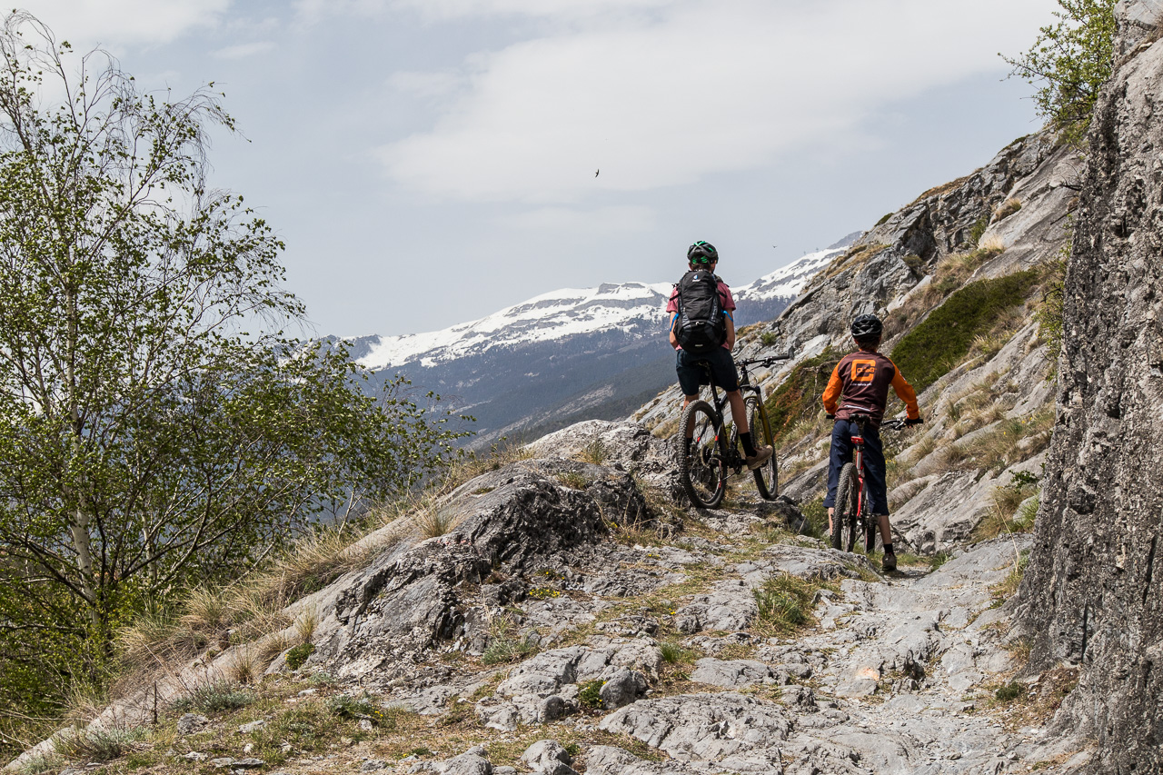 Wir reisten nun also mit vier Rucksäcken und vier Bikes ins Wallis, mussten vier Mal umsteigen, was immer recht gut ging. Auf der SBB-App sieht man vorgängig, wie stark der jeweilige Zug belegt ist und wo die Veloabteile sind, so kann man sich schon in Position bringen auf dem Perron. Im Zug selber konnten wir die Bikes unterschiedlich gut versorgen. In den Regionalzügen ist es normalerweise kein Problem, bei den ICs hat man mal Glück, mal weniger. Von Aarau bis Bern fanden wir Veloabteile für drei Velos vor, so dass wir uns aufteilen mussten. Zudem ist die Türe schmal und nicht ebenerdig. Anders sah es im IC von Bern nach Visp aus: Ebenerdiger Eingang, Platz für etwas zehn Velos. Dieser Platz war dann aber auch gut belegt, aber so ist es angenehm, mit dem Zug in die Ferien zu fahren.