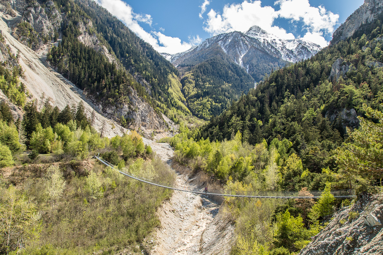 Am ersten Tag durchquerten wir zu Fuss den sagenhaften Pfynwald und die angrenzende Steppe. Die Buthanbrücke ist nach einer Revision wieder begehbar, sie bietet einen beeindruckenden Blick in den sehr aktiven Illgraben. Wenn man Glück hat, kann man einen Murgang beobachten.