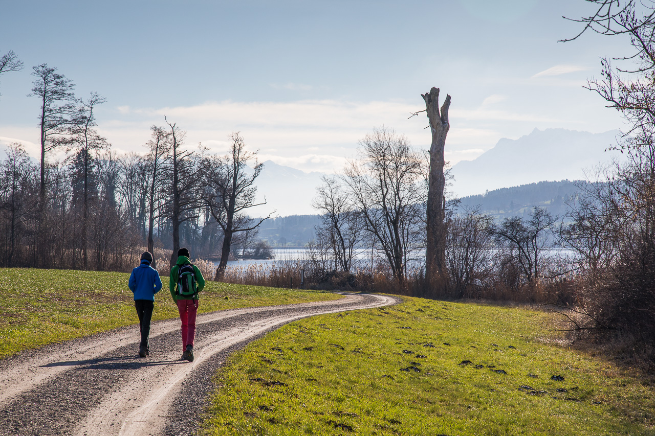 Unspektakulär, aber gemütlich ist die Wanderung dem Baldeggersee entlang von Hitzkirch nach Baldegg. Bei guter Sicht hat man immer die Innerschweizer Berge vor sich und am Ende kann man sich im Klosterkafi wieder aufwärmen, falls die Bise zu sehr an der Substanz genagt hat.
