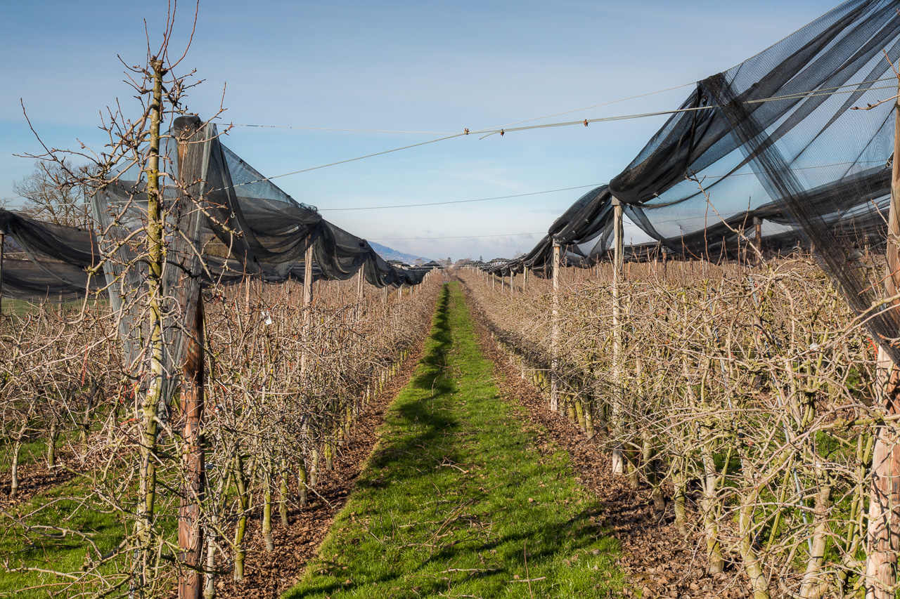 Vom Bahnhof her führt der Wanderweg ein Stück weit direkt neben der Bahnlinie und der Hauptstrasse vorbei, entsprechend hoch ist der Lärmpegel. Zum Glück dauert das nicht allzu lange, so dass wir die Idylle des Sees geniessen können. Reiherenten bevölkern den See, sie sind vom Norden zugezogen und überwintern hier. An zwei, drei Orten gibt es Sitzbänke, die zum Verweilen einladen würden, wenn die Bise nicht so in die Glieder fahren würde. Die Aussicht in die Berge ist trotzdem phänomenal. Und immer wieder passieren wir Obstplantagen, Spalierbäume ohne ökologischen Wert. Zum Glück gibt es aber auch noch viele Hochstammobstbäume, deren Obst unter dem Label „Hochstamm Seetal“ vermarktet wird.