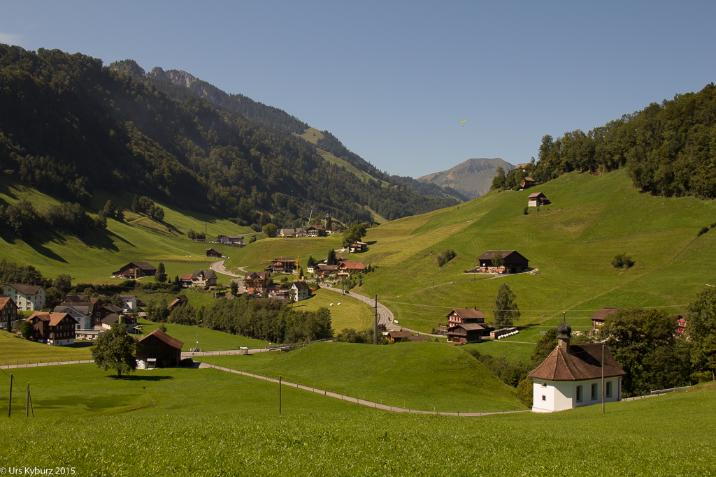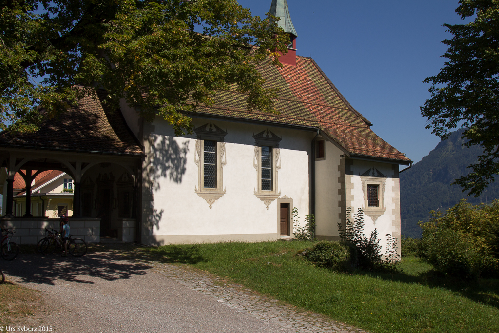 Da wir uns hier auf einem Wanderweg befinden, muss immer mit Fussgängern gerechnet werden, man muss also auf Sicht anhalten können. Das letzte Weglein, und wir kommen in Seelisberg an. Bei einer Kapelle verschnaufen wir erst mal. „War das geil oder war das geil“, frage ich in die Runde. „Weder noch, das war super-mega-geil!“ war Fabians prompte Antwort.