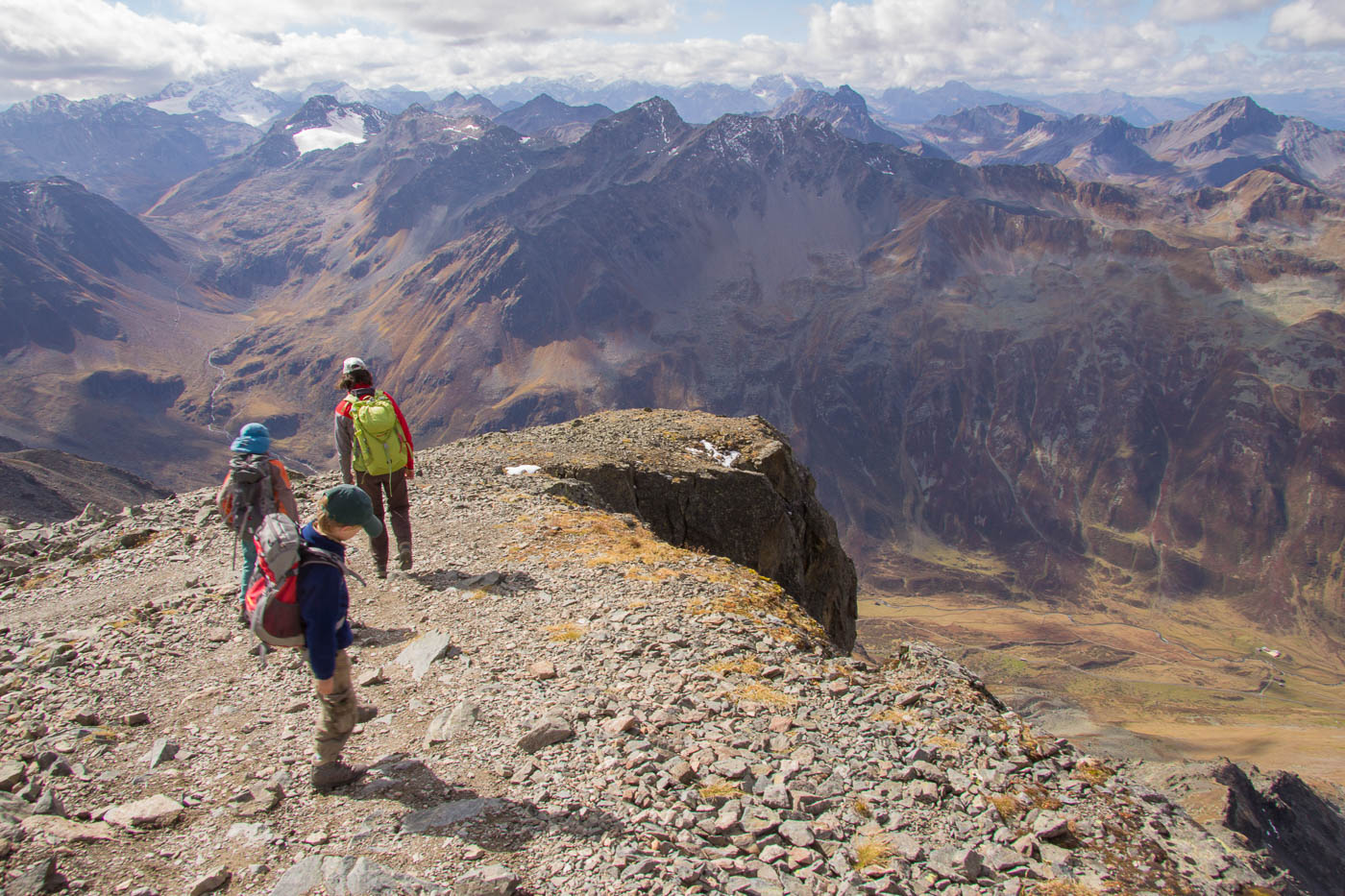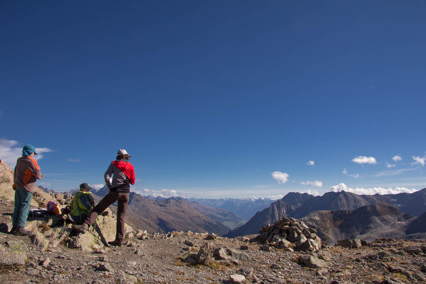 Unsere heutige Tour führte uns auf das Flüela Schwarzhorn (3146 m). Herbstliche Farben in allen Rot-, Braun- und Gelbtönen prägten die Wanderung. Der gleichmässig steigende Weg vereinfachte die Tour. Die Murmeltiere sogen nochmals die Wärme der Herbstsonne auf, bevor sie sich für fünf Monate in den Winterschlaf begeben.