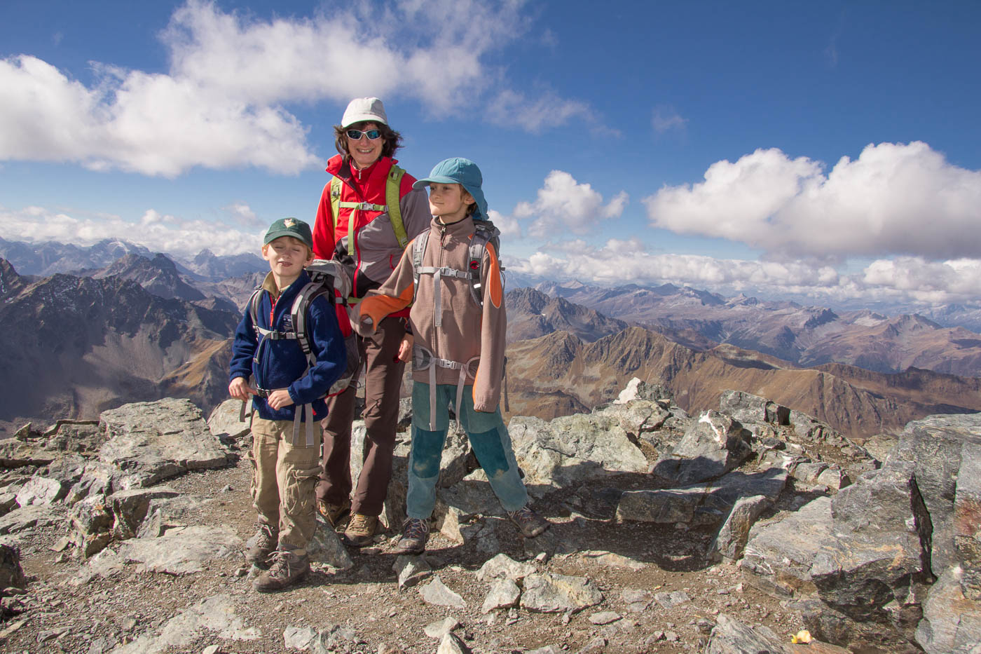 Auf dem Grat folgten wir weiter dem hervorragend ausgebauten Wanderweg, für diese Höhe noch speziell. Zum Teil wurden sogar Steinplatten verlegt, der Weg ist beinahe kinderwagentauglich. Trotzdem: Für Szenebartussen und -typen ist diese Tour nicht geeignet, das Gucci-T-Shirt könnte verschwitzt und die weissen Turnschuhe dreckig werden, so der Träger/die Trägerin überhaupt weiter als 200 Meter kommt. Dass es sich nicht wirklich um einen Geheimtipp handelt, merkten wir bald. Dutzende anderer Wanderer erklommen ebenfalls den Gipfel, auch mit Kindern. Unsere waren also in guter Gesellschaft.