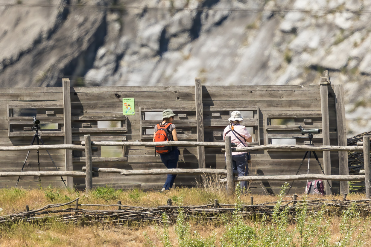 Das Ziel am ersten Tag war das Leukerfeld. Unter Ornithologen ist es längst kein Geheimtipp mehr, wer Bienenfresser fotografieren oder auch nur beobachten will, geht da hin. Mitte Mai ist der ideale Zeitpunkt dafür. Es war heiss, was den Bienenfressern natürlich gefiel, sie waren schon von weitem zu hören. Die Neuntöter waren aktiv und stillten ihren Hunger, indem sie Insekten im Flug erbeuteten. Beim Wendehals entdeckte ich erst zu Hause am Bildschirm, dass sich da auch noch eine Smaragdeidechse reingeschmuggelt hatte. Auch viele andere Vögel entdeckten wir, hier einige Bilder davon.