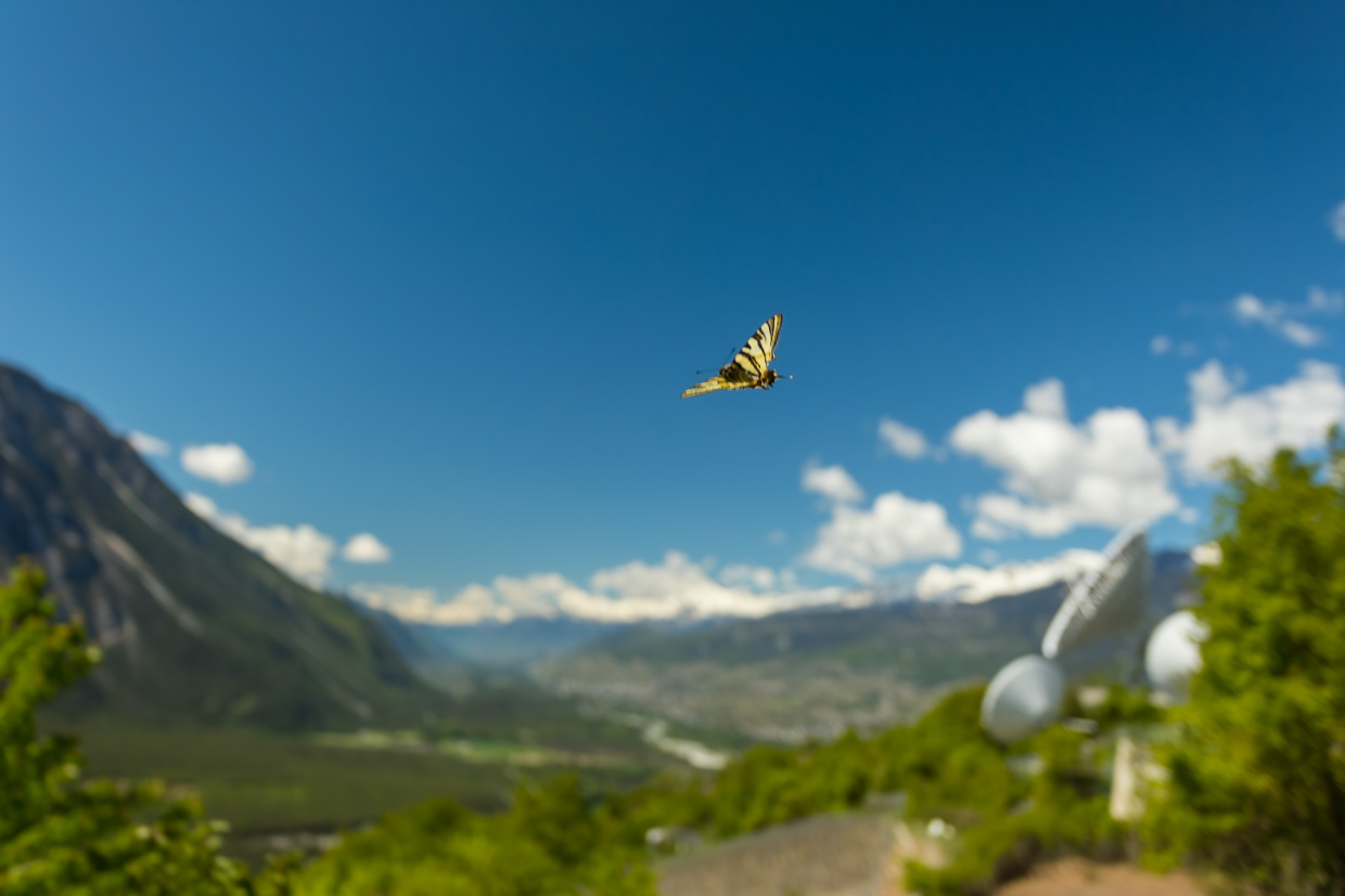 Sie sind bekannt und von weither sichtbar, die riesigen Bodenempfangsanlagen über Leuk. Die Umgebung ist auch ein Hotspot der Artenvielfalt, schon viele seltene Tiere haben wir dort gesehen. Auch an diesem Tag konnten wir wieder schöne Beobachtungen machen, das Highlight waren natürlich die beiden Schlangenadler. Auch über den Wespenbussard wie auch über die Segelfalter freuten wir uns.