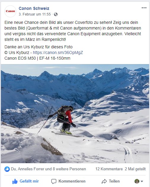 Canon Schweiz hat für den Februar 2020 als Facebook-Headerbild ein Bild von Idnu gewählt! Idnu-Bild bei Canon Schweiz Teilen mit: Auf X teilen (Wird in neuem Fenster geöffnet) X Auf Facebook teilen (Wird in neuem Fenster geöffnet) Facebook Auf Pinterest teilen (Wird in neuem Fenster geöffnet) Pinterest Auf LinkedIn teilen (Wird in neuem Fenster geöffnet) LinkedIn Einen Link per E-Mail an einen Freund senden (Wird in neuem Fenster geöffnet) E-Mail Auf WhatsApp teilen (Wird in neuem Fenster geöffnet) WhatsApp Drucken (Wird in neuem Fenster geöffnet) Drucken Gefällt mir:Gefällt mir Wird geladen … Ähnliche Beiträge