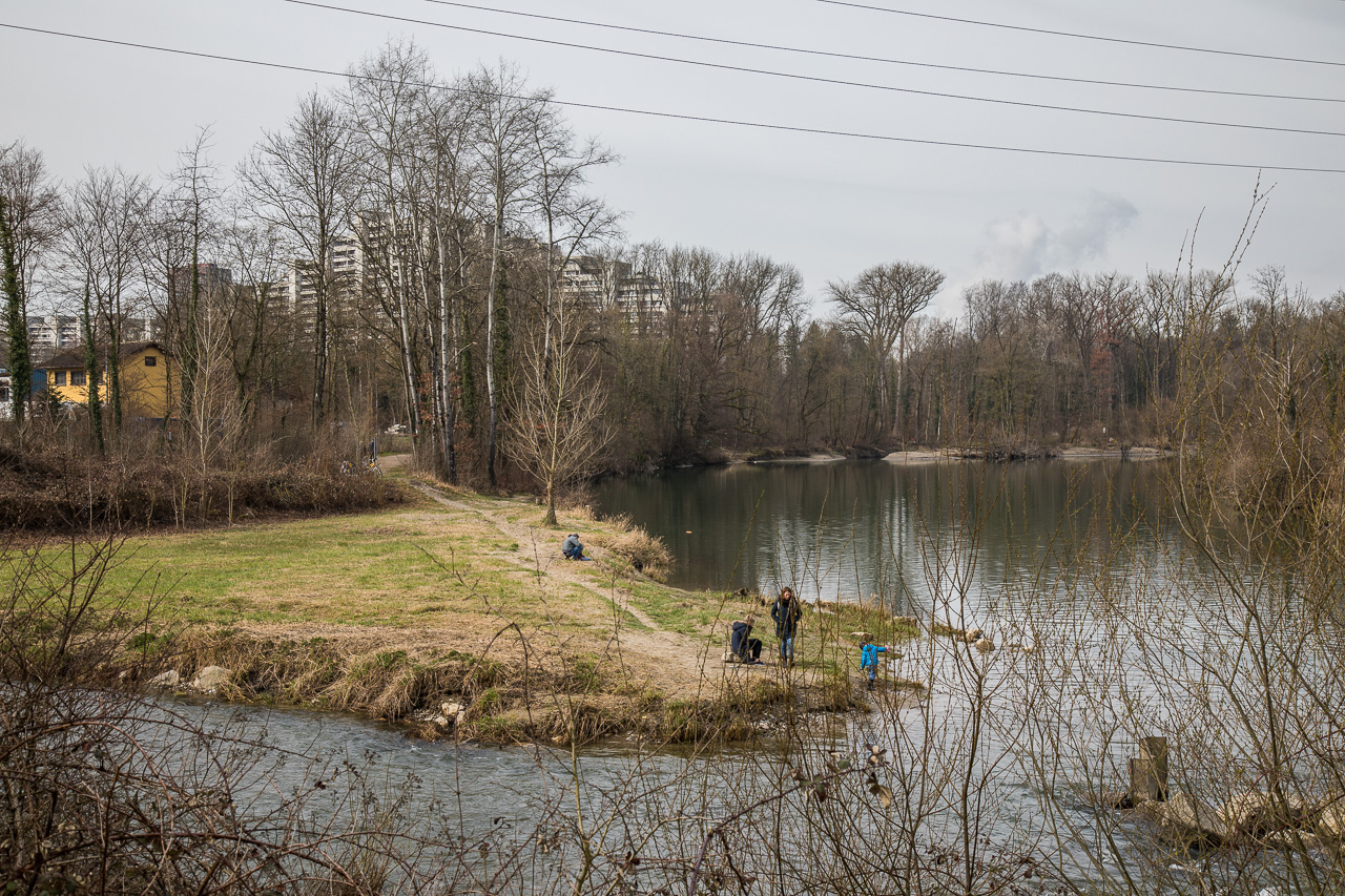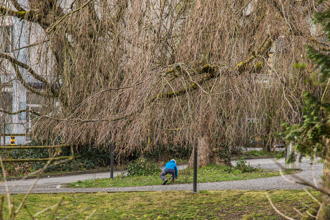 Eine kurze Wanderung, die mit dem ÖV von uns aus machbar ist und spannende Beobachtungen möglich macht: Das ist der Plan für heute. An diesem herrlichen Frühlingstag starten wir vom Bahnhof Aarau aus unsere Tour. Kaum aus der Unterführung am Tageslicht, beginnt Silvan mit dem Botanisieren im Park der Kantonsschule Aarau, wo bereits Albert Einstein (erfolgreich notabene) die Schulbank gedrückt hatte. Es geht auf dem Fussweg abwärts in die Telli mit seiner riesigen Überbauung, im Volksmund „Staumauer“ genannt. Sie mag riesig und nach Massenhaltung aussehen, aber eigentlich ist man hier der Natur näher als in manchen Einfamilienhäuserquartieren, denn gleich nebenan liegt das Summergrien, ein Wald, durchzogen von Bachläufen, und sie hat einen eigenen Kleintierzoo. Wir wandern durch diesen Wald, lauschen den Vögeln, sehen den ersten Alpensegler in diesem Jahr. Auch andere scheint es an diesem schönen Frühlingsmorgen nach draussen zu ziehen.