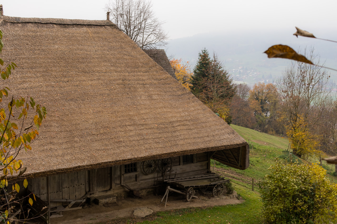 Wir spazieren nun dem Waldrand entlang, dann durch den Wald hindurch zum Seeberg, wo das Strohdachhaus steht. Dieses kann nur gegen Voranmeldung besichtigt werden. Der Balken über dem Tenntor trägt die Jahreszahl 1783. Strohdachhäuser, auch Strohhäuser oder Aargauerhäuser genannt, sind die älteste Hausform im Aargau.