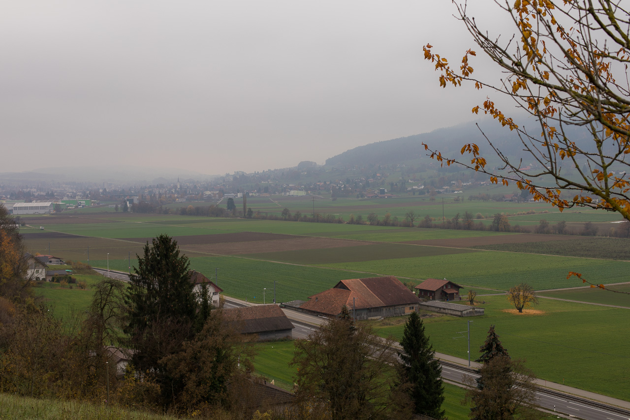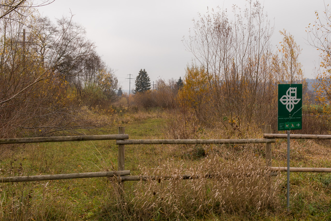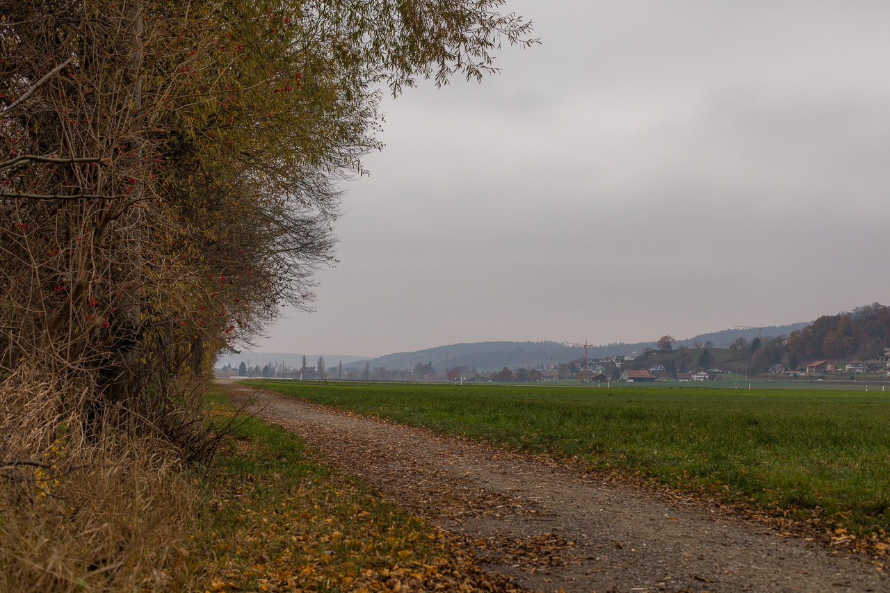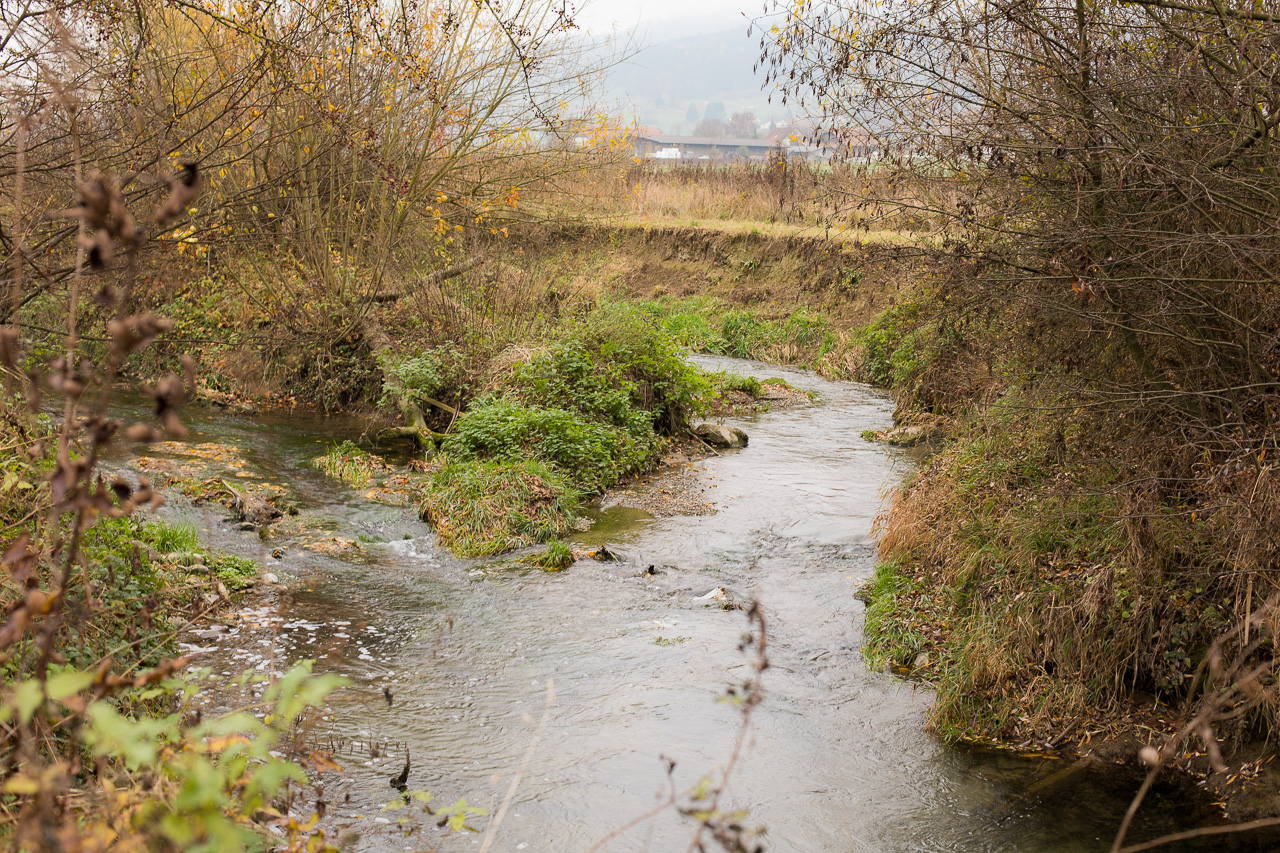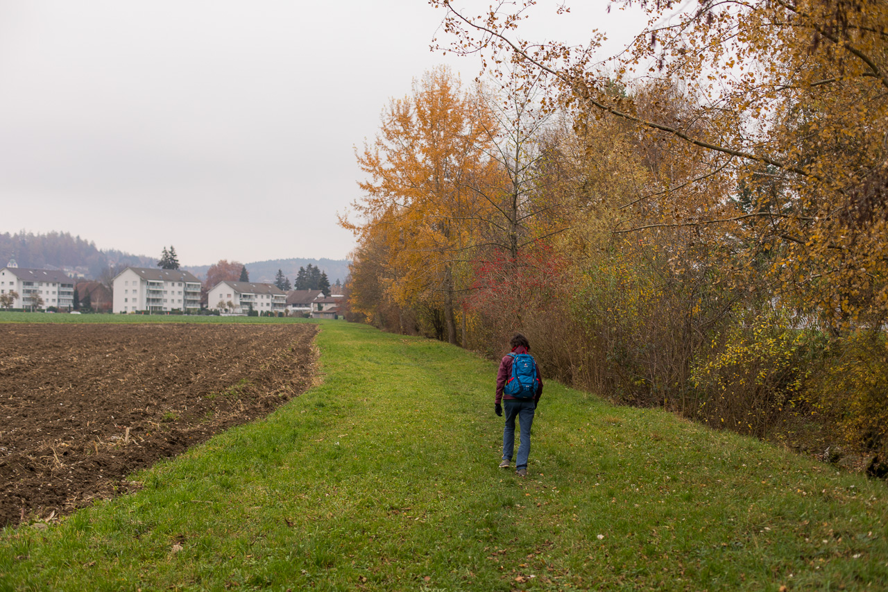 Über die Moräne gelangen wir nach Zetzwil, wo wir auf den Zug wollen. Dieser fährt aber just in dem Moment vorbei, als wir noch hoch oben sind. Was tun, eine halbe Stunde warten? Nein, spazieren wir halt durch die Moos genannte Ebene der Wyna entlang zurück, vorbei am Naturschutzgebiet, das dem Bach wieder mehr Raum gibt.