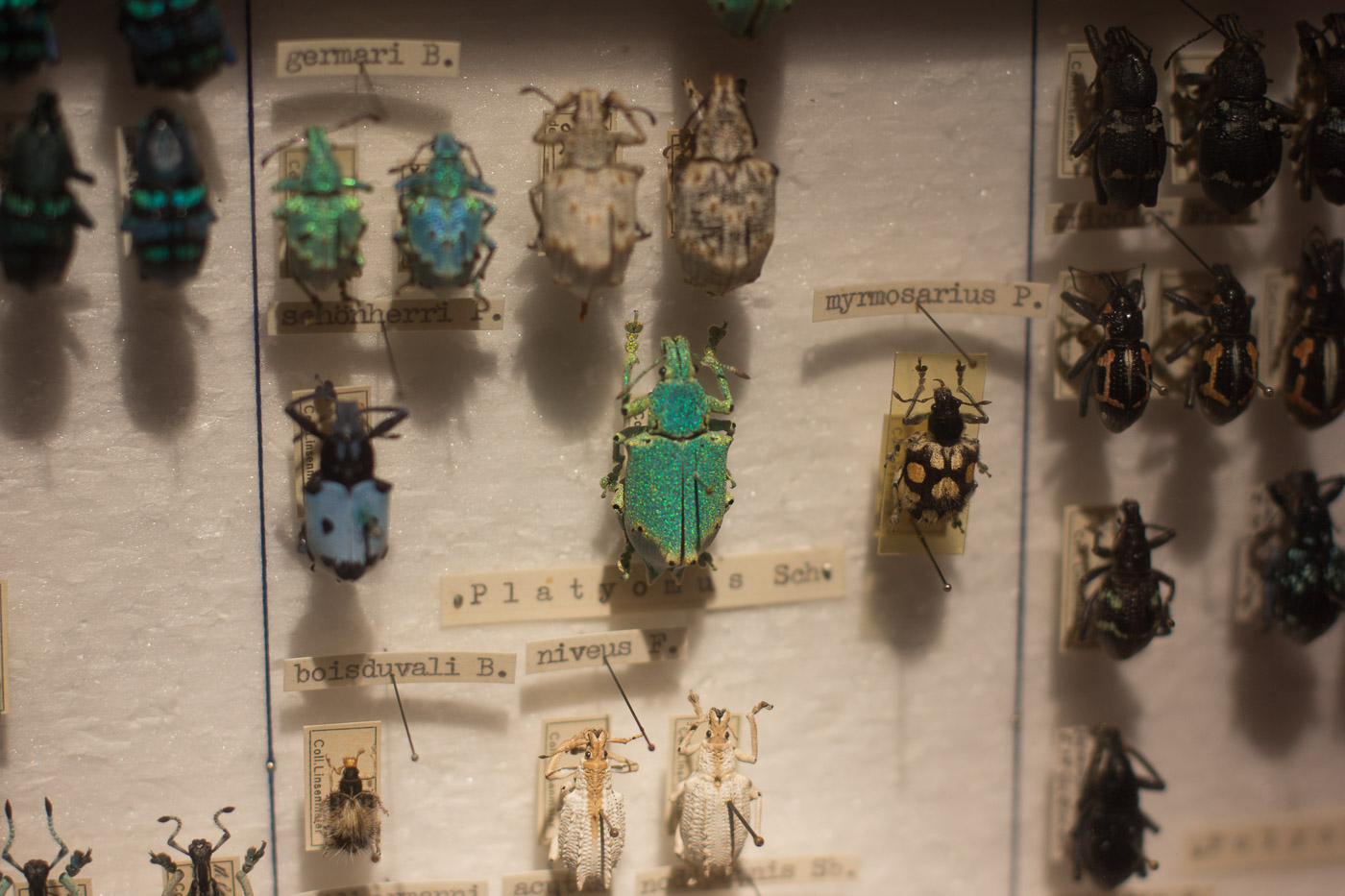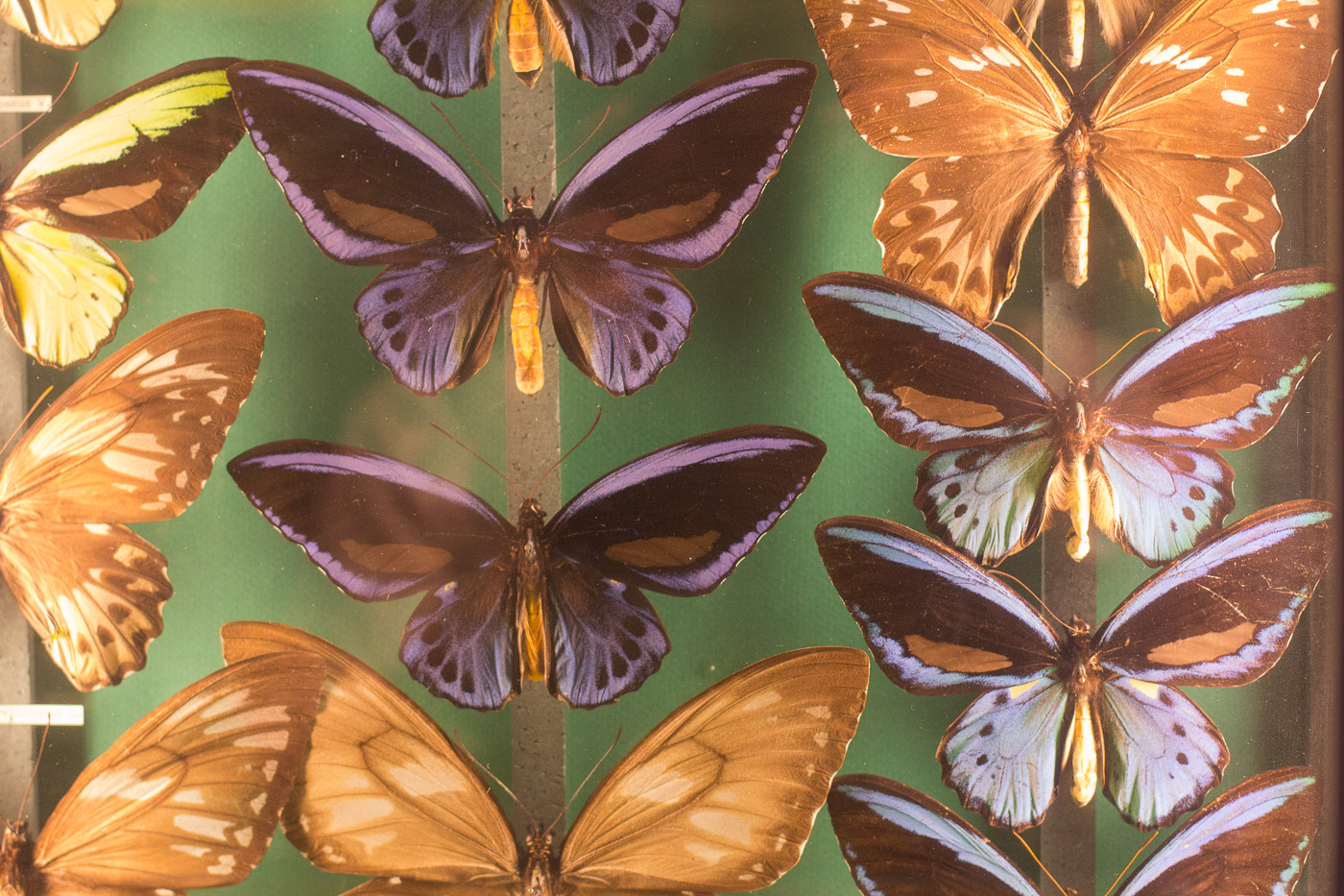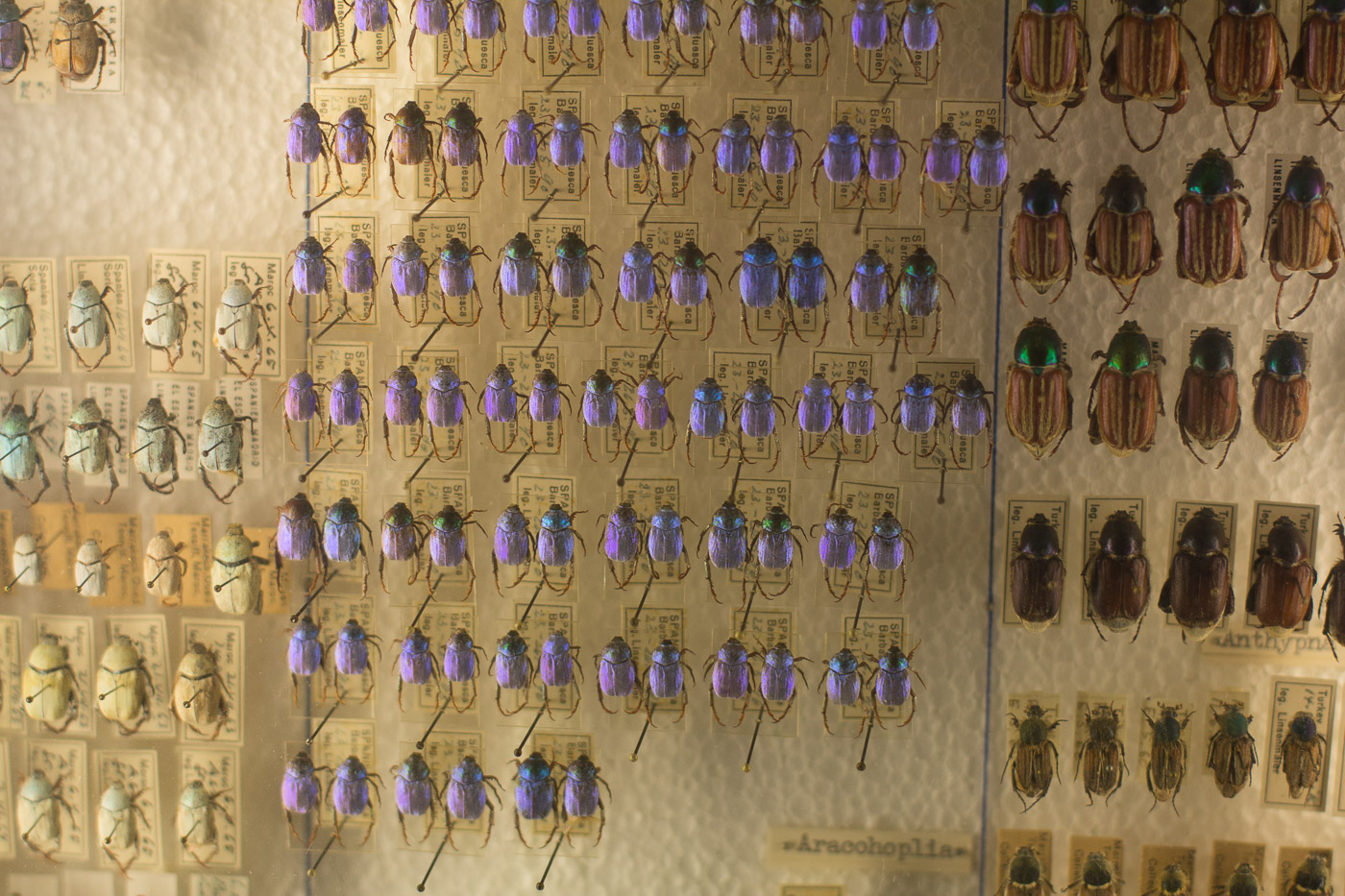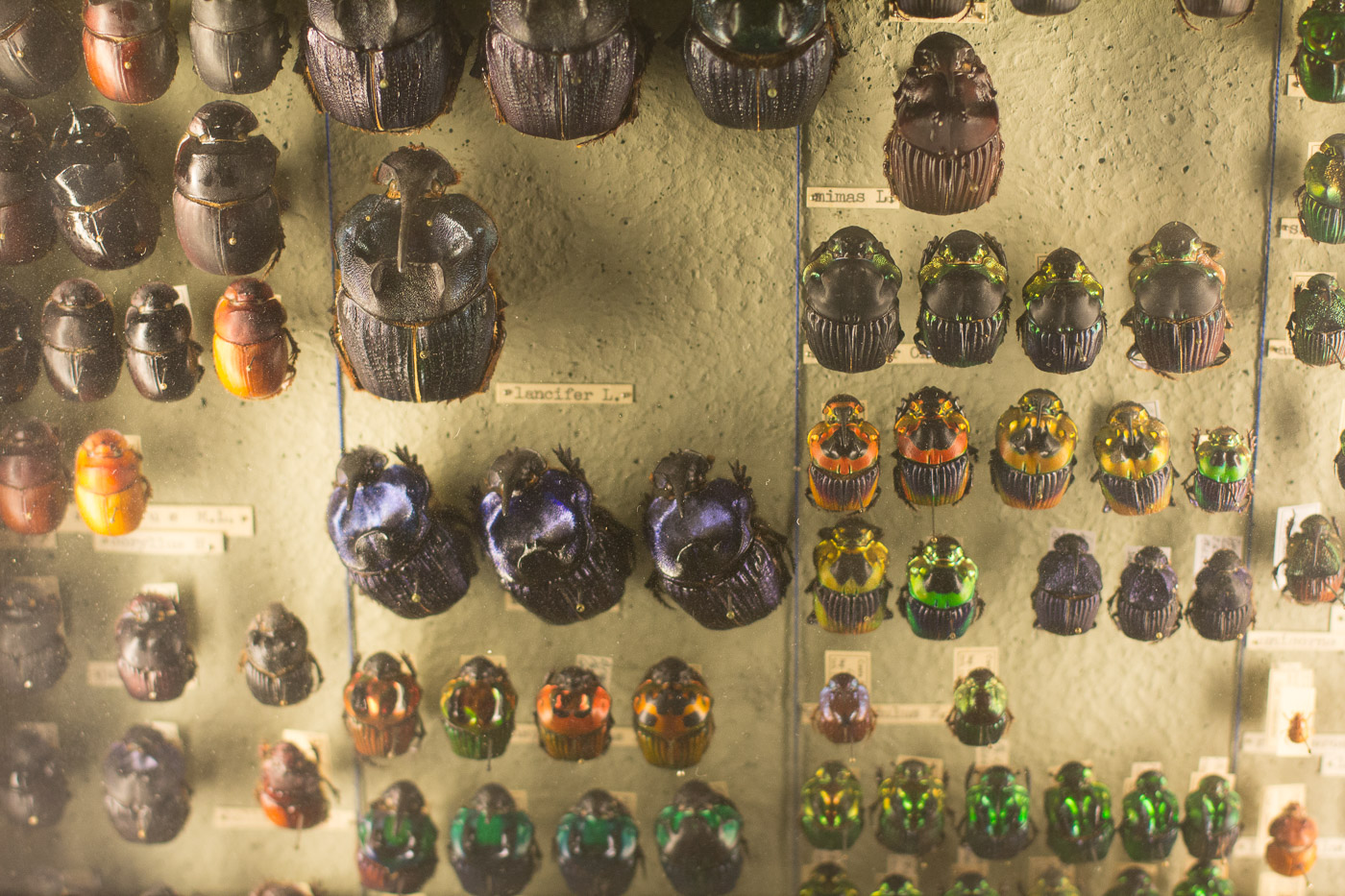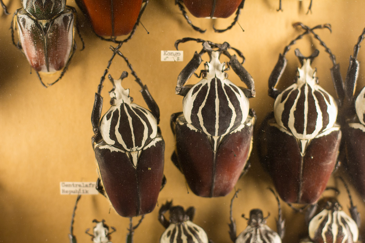 Der oberste Stock ist nur für Leute, die nicht eine generelle Abneigung gegen sechsfüssige Tiere hat. Den dort finden wir Insekten in unglaublichen Farben und Formen. Und was man zu sehen bekommt, ist nur ein kleiner Teil der enormen Sammlung von Walter Linsmeier. Auf der Museumswebsite tönt das dann so: