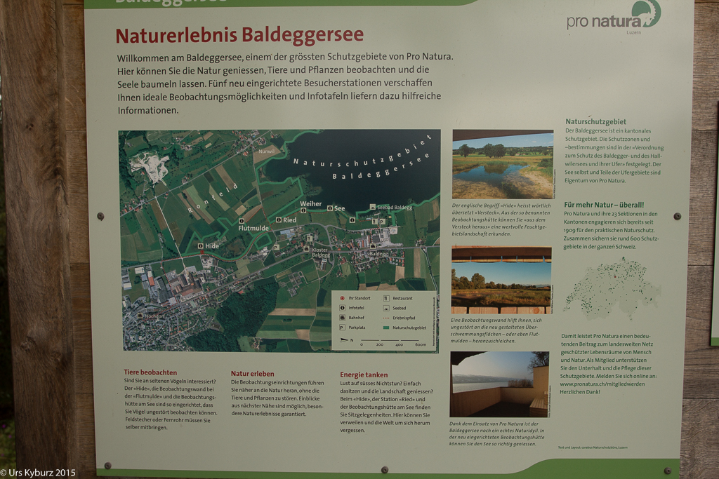 Sonntag. Nach mehreren Wochenenden mit Action und einem langen Samstagabend sollte es wieder mal etwas Gemütlicheres sein. Auch waren wir schon lange nicht mehr auf Beobachtungstour. So kam ich denn auf das Ronfeld in Hochdorf am Baldeggersee, das Pro Natura gehört. Es ist quasi die Fortsetzung des Spazierganges vom Herbst vor drei Jahren (Warum ich lieber ein Mensch als ein Storch bin).