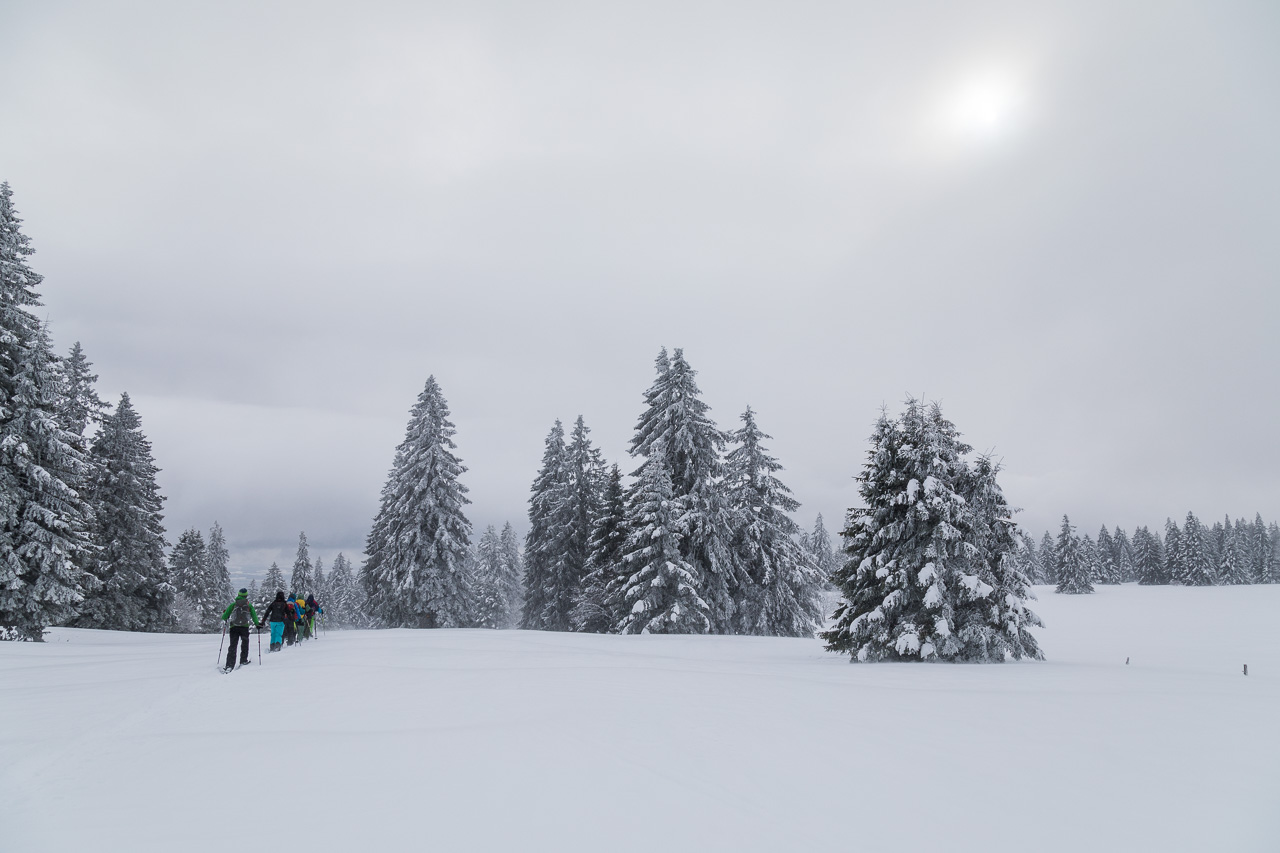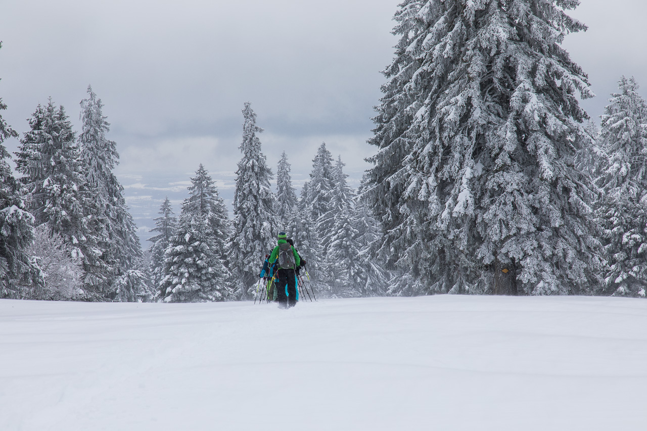 Im Winter ist der Jura noch einsamer, erst recht bei dem Wetter, welches wir antrafen. Aber genau das macht seinen Reiz aus. Die Tour auf den Mont Racine ist gut per ÖV erreichbar und bietet, wenn die Sicht gut ist, eine fantastische Aussicht auf das Mittelland mit dem Neuenburgersee und die Alpen.