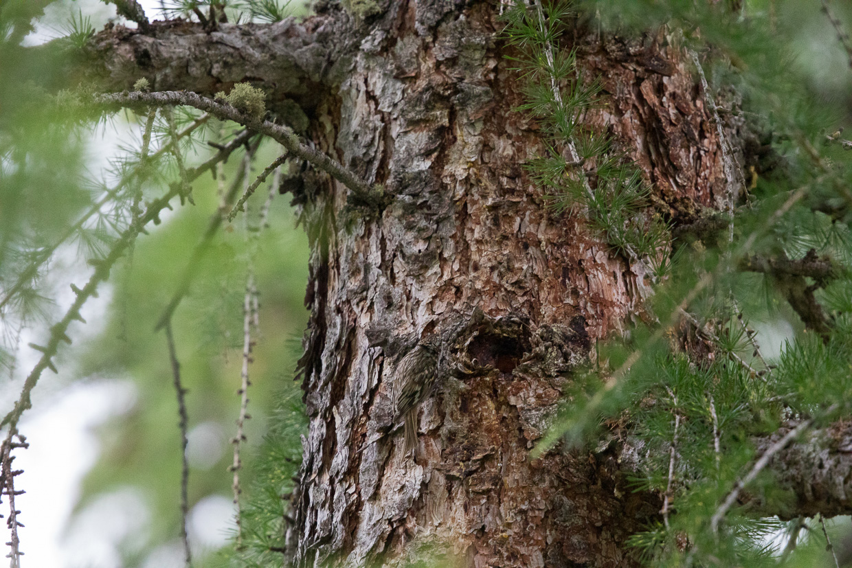 Wir entdeckten weitere Vögel im Wald wie Wacholderdrosseln, Eichelhäher, Berglaubsänger und Waldbaumläufer. Wie gut diese kleinen Vögel getarnt sind, siehst du auf dem Bild unten.