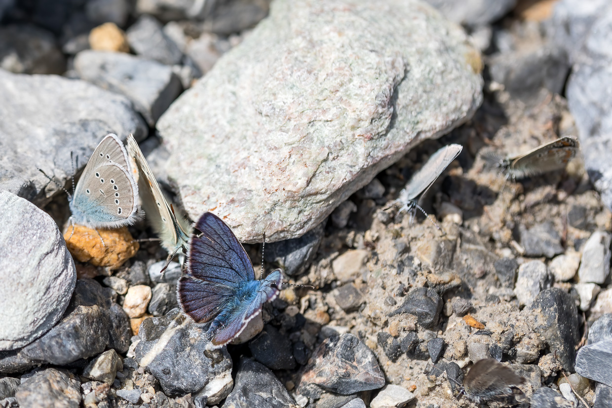 Die Schmetterlinge tummelten sich aber nicht nur auf der Wiese, sondern auch im Bachbett selber, wo sie sich an bestimmten Orten sammelten, um Salze aufzunehmen.